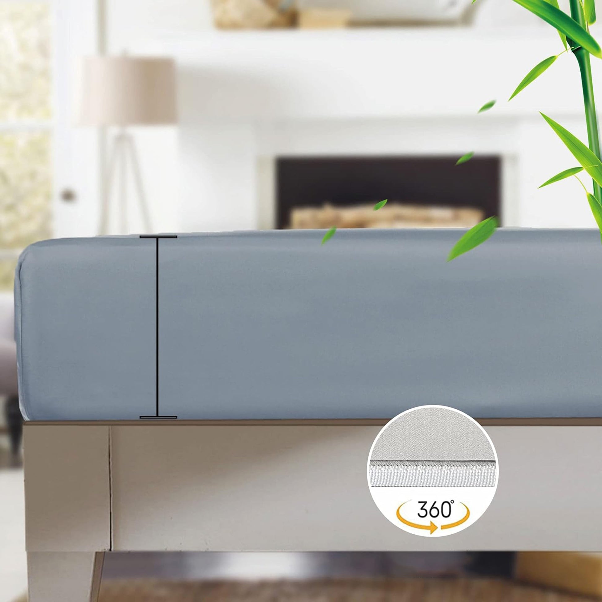 100% Bamboo Luxuriously Breathable and Silky Soft Bed Sheet Set - Smoke Blue