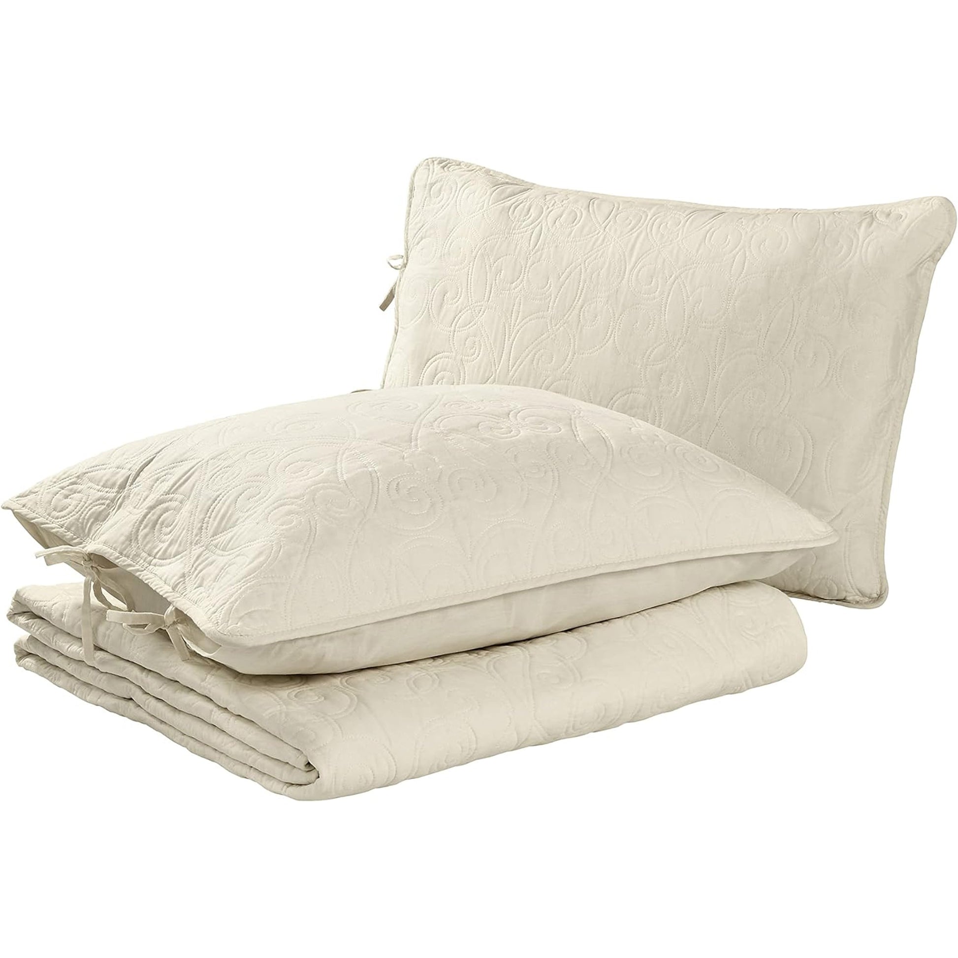 100% Cotton, Reversible All Season Bedding Quilt Set - Ivory