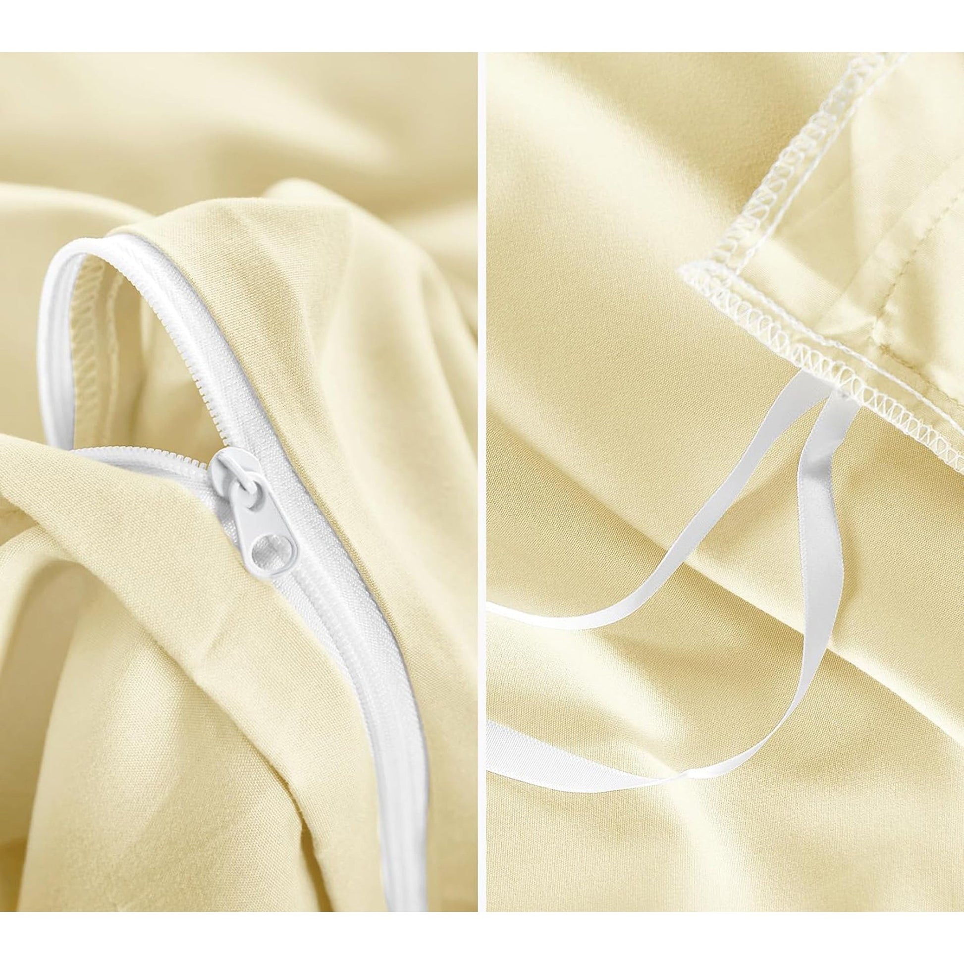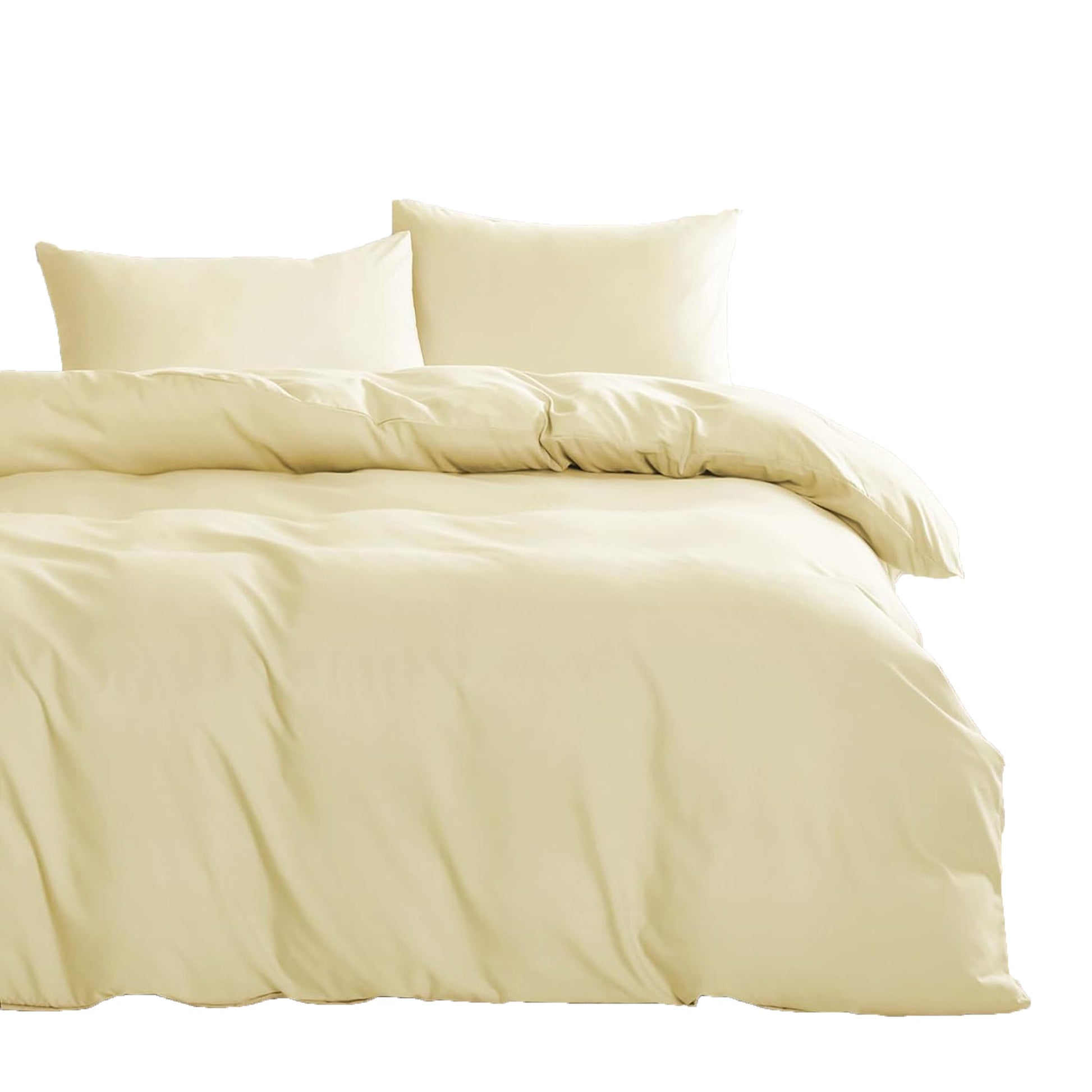 1000TC Ultra Soft Microfiber Duvet Doona Cover Bedding Quilt Cover Set - Yellow Cream