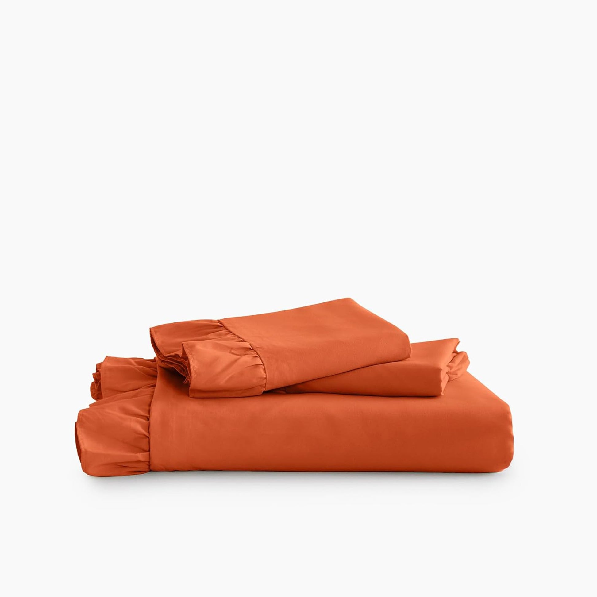 1000TC Ultra Soft Microfiber Duvet Doona Cover Quilt Cover Set - Ruffle Burnt Orange