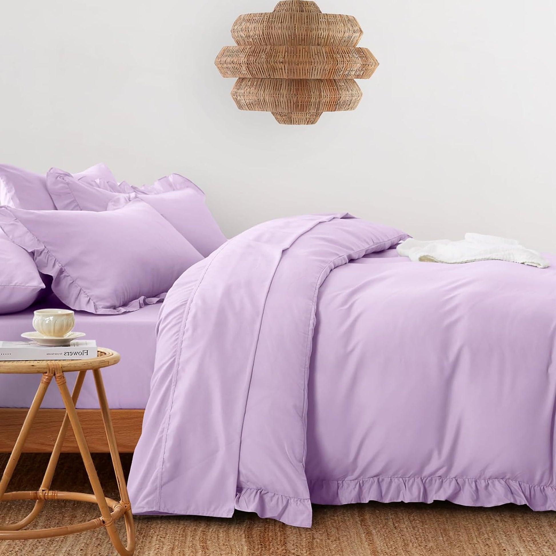 1000TC Ultra Soft Microfiber Duvet Doona Cover Quilt Cover Set - Ruffle Lilac