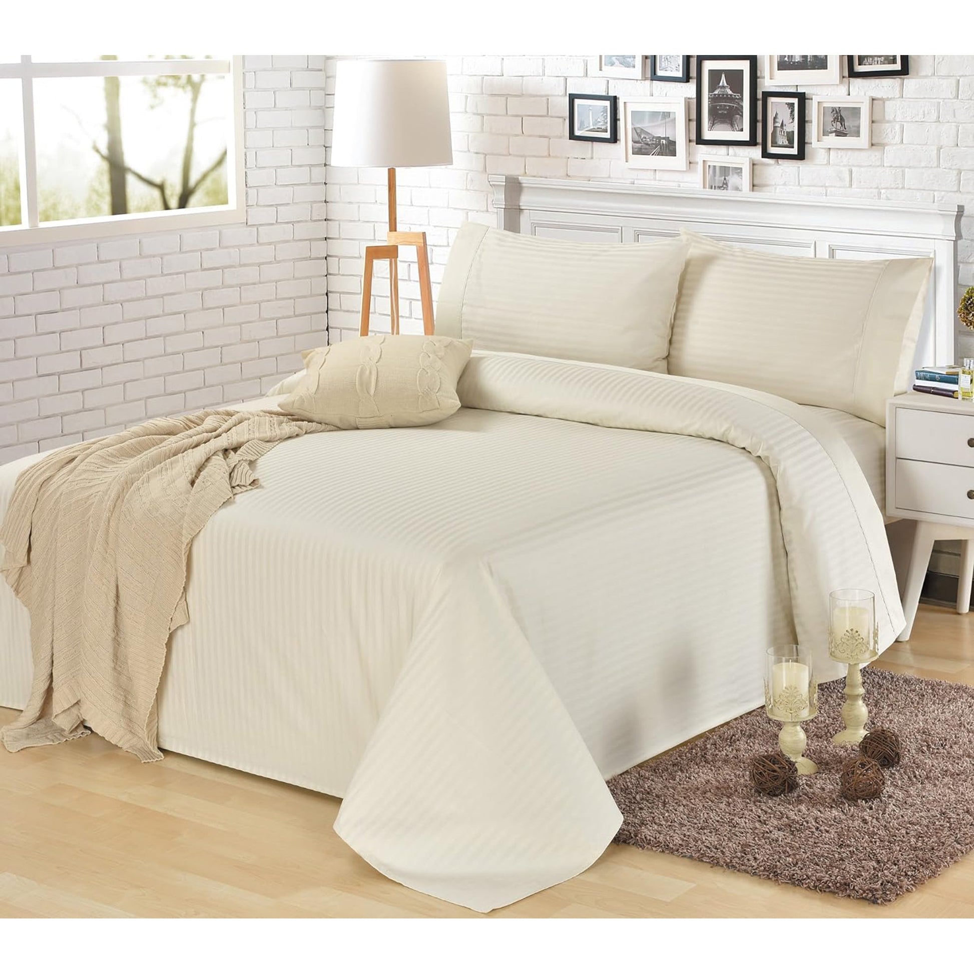 1200TC Egyptian Cotton Luxury Deep Pocket Bed Sheet Set - Ivory Stripe