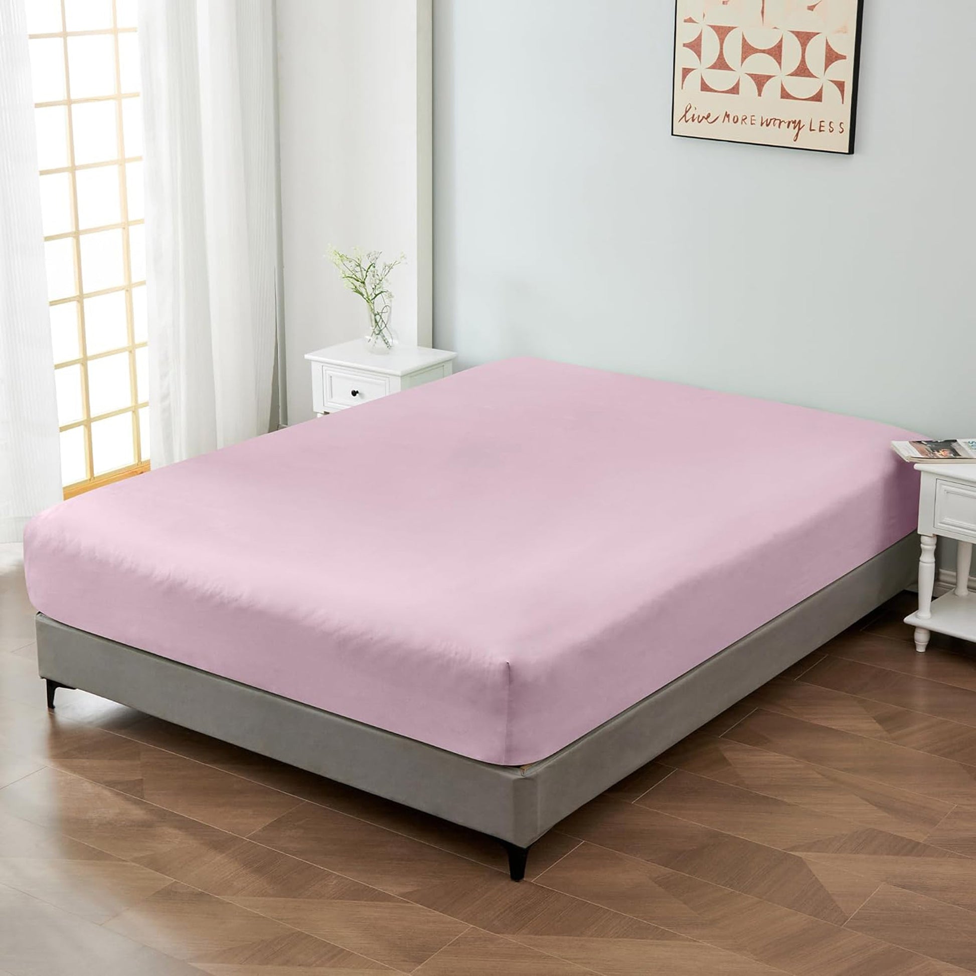 -Extra Deep Pocket and Perfect Fit: With 40cm deep pockets and elastic all around, our fitted sheet ensures a snug and secure fit on mattresses of various depths, preventing annoying slipping or bunching throughout the night.