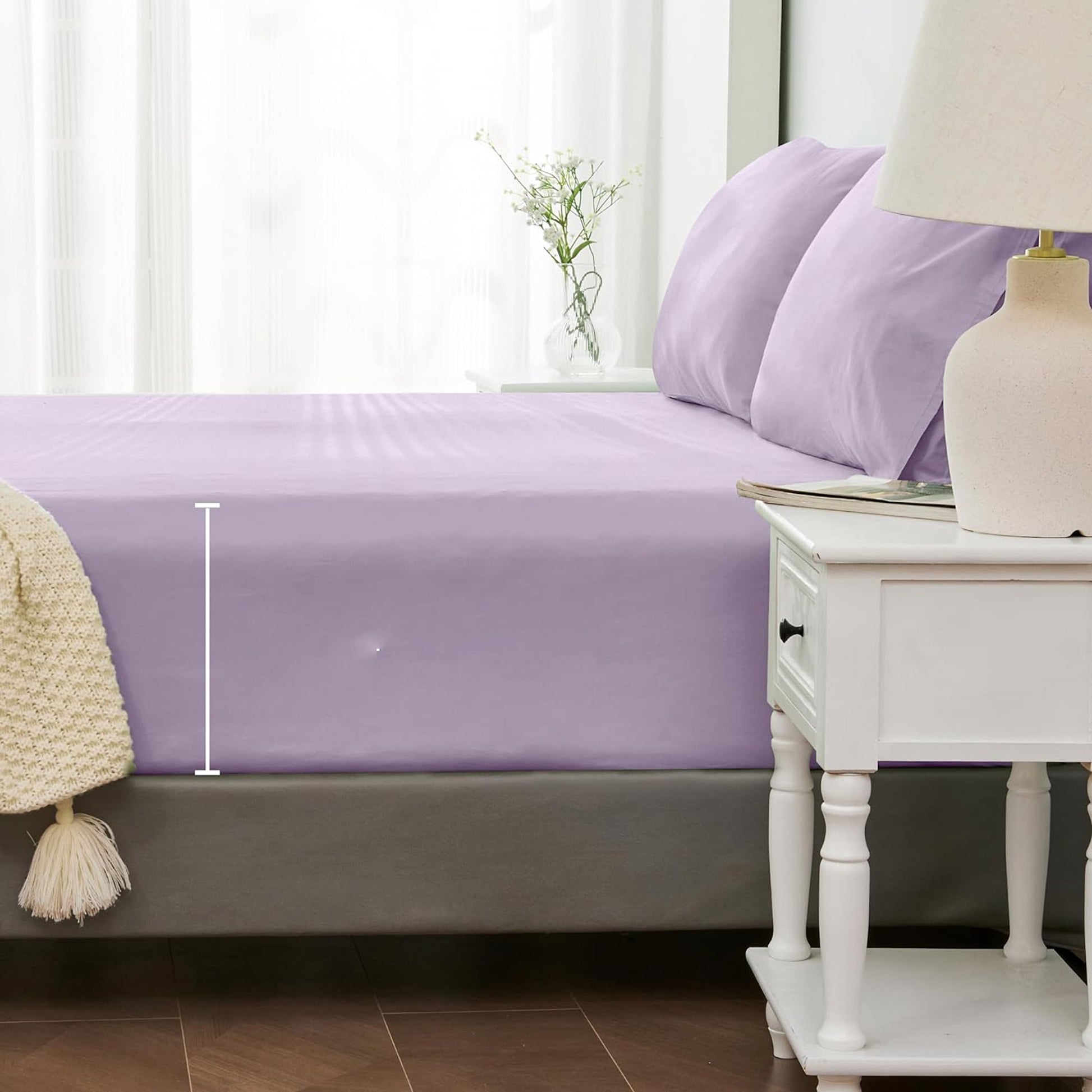 1200TC Sateen Weave Premium 100% Cotton Fitted Sheet - Lavender