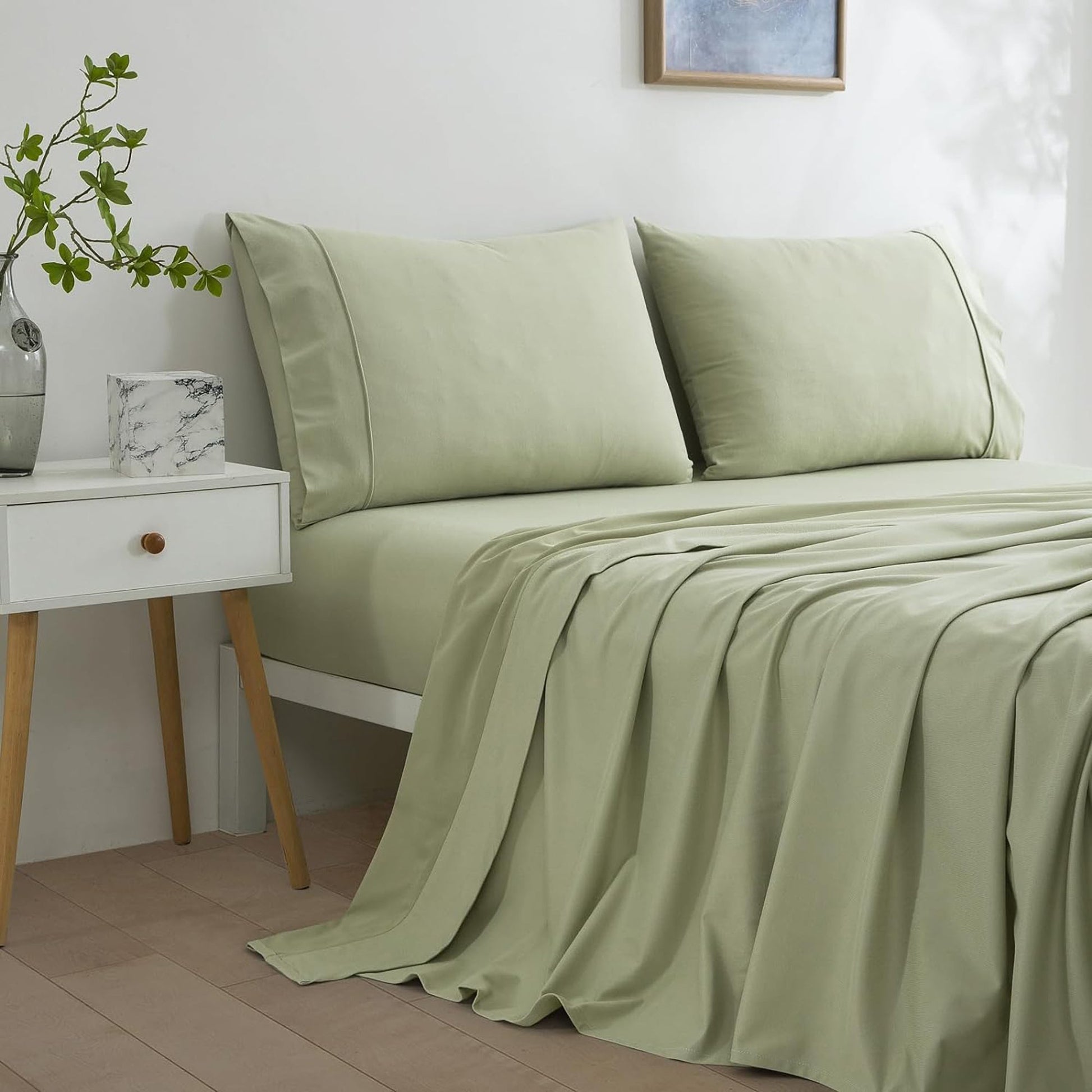 130 GSM Flannelette Soft Luxurious Micro Flannel Bed Sheet Set - Sage