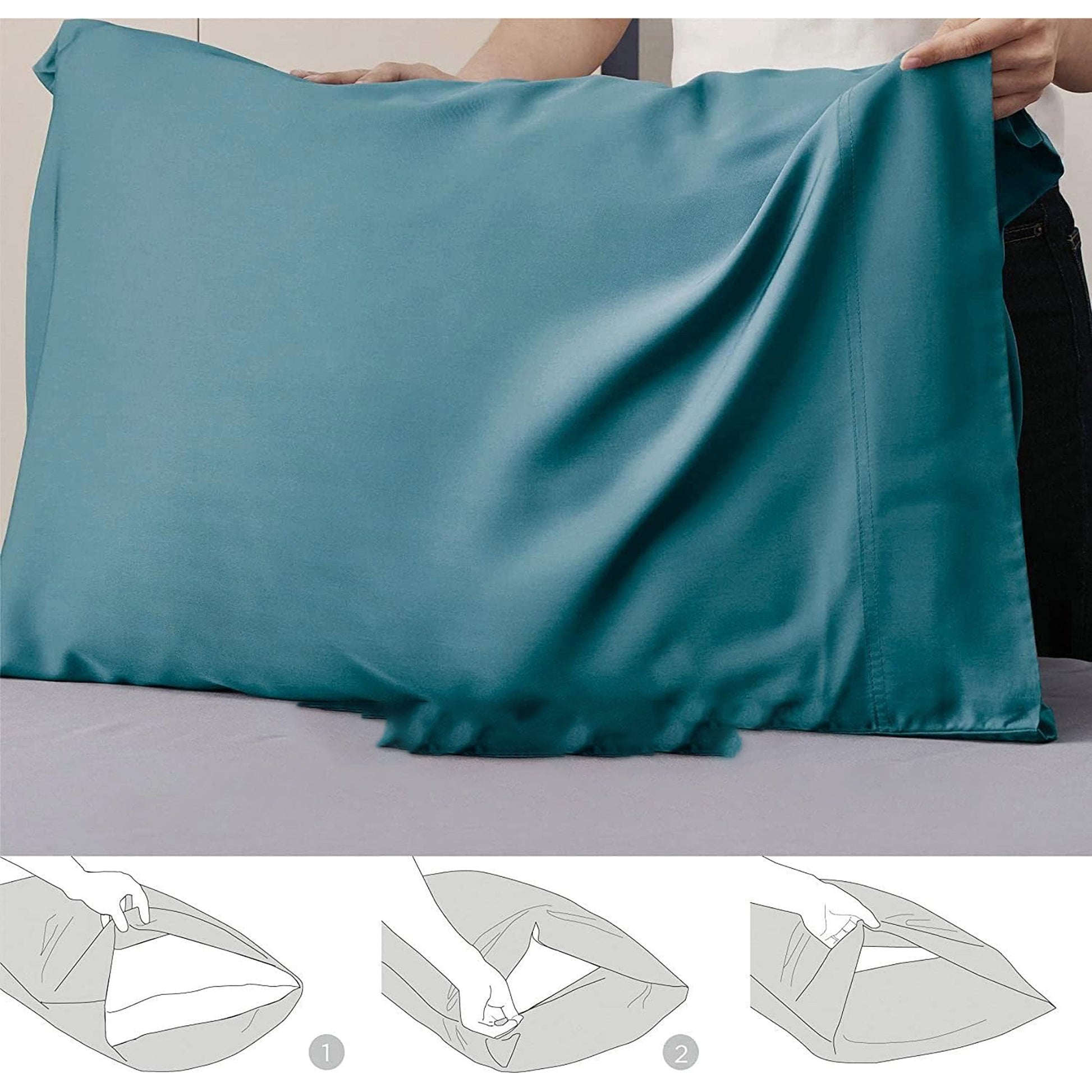 -Ultra Soft: Made with 100% soft polyester microfiber that is softer than cotton touch and feel the difference. Get ready for an unparalleled sleep experience all year round. Premium Quality: This pillow cover set uses microfiber fabric that is resists wrinkles and say smooth all night long. Good sewing stitch and exquisite workmanship reduce loose threads offering lasting durability and comfort. Envelope Closure: A simple envelope closure design prevents your pillows from escaping during your sweet dreams. It enables easy on and off of pillow covers every time. With no zippers and buttons, all you feel is incredible softness. Easy Care: To maintain the pillow cover quality over time, machine wash on a cold cycle and use a dryer under low heat settings. Your pillowcase will come out fresh and crispy just like new every time.