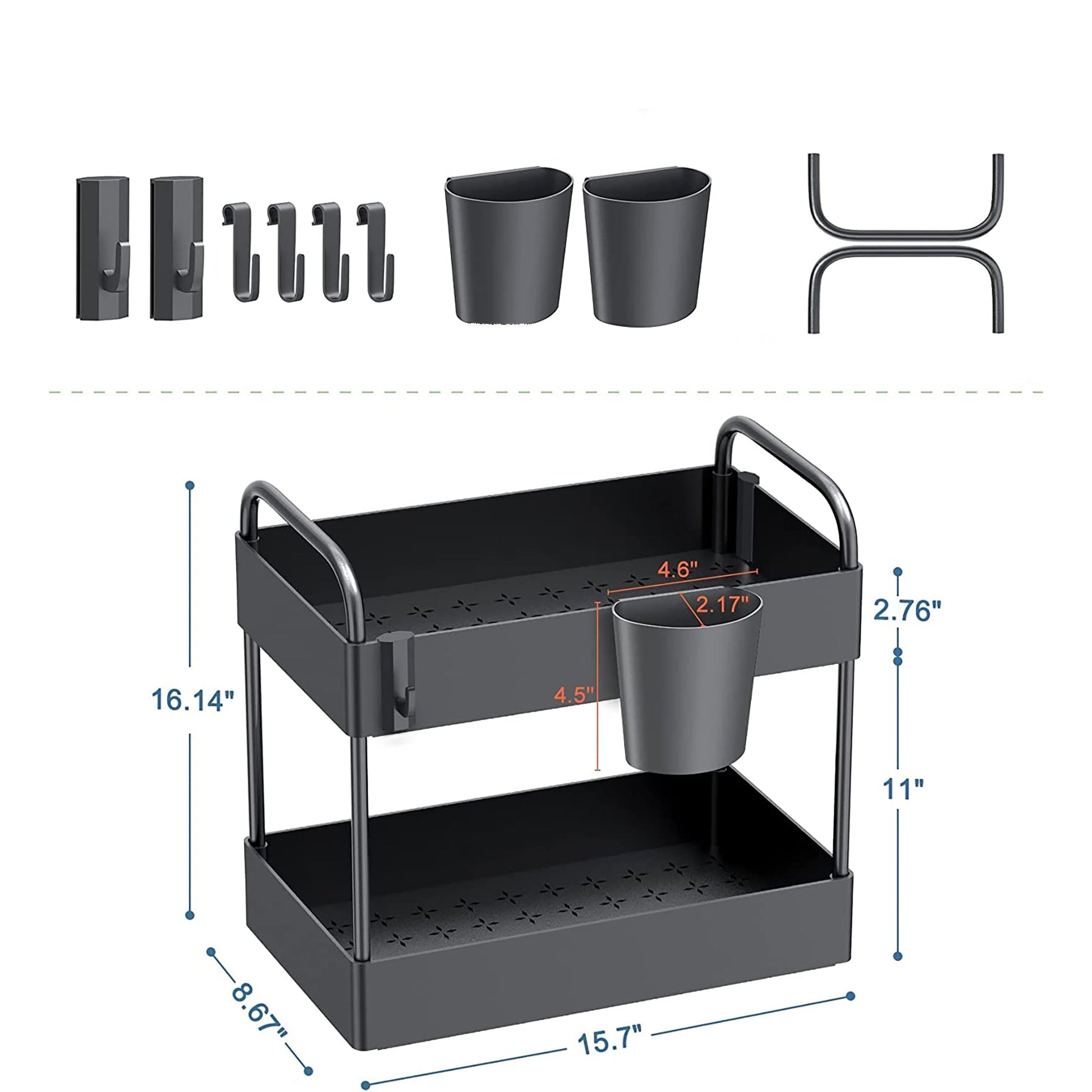 -Ideal Size: 15.7 L x 8.67 W x 16.14 H inches, this sink organizer can be comfortably placed under almost all sinks or even a countertop organizer for a kitchen bathroom Vanity Tray.