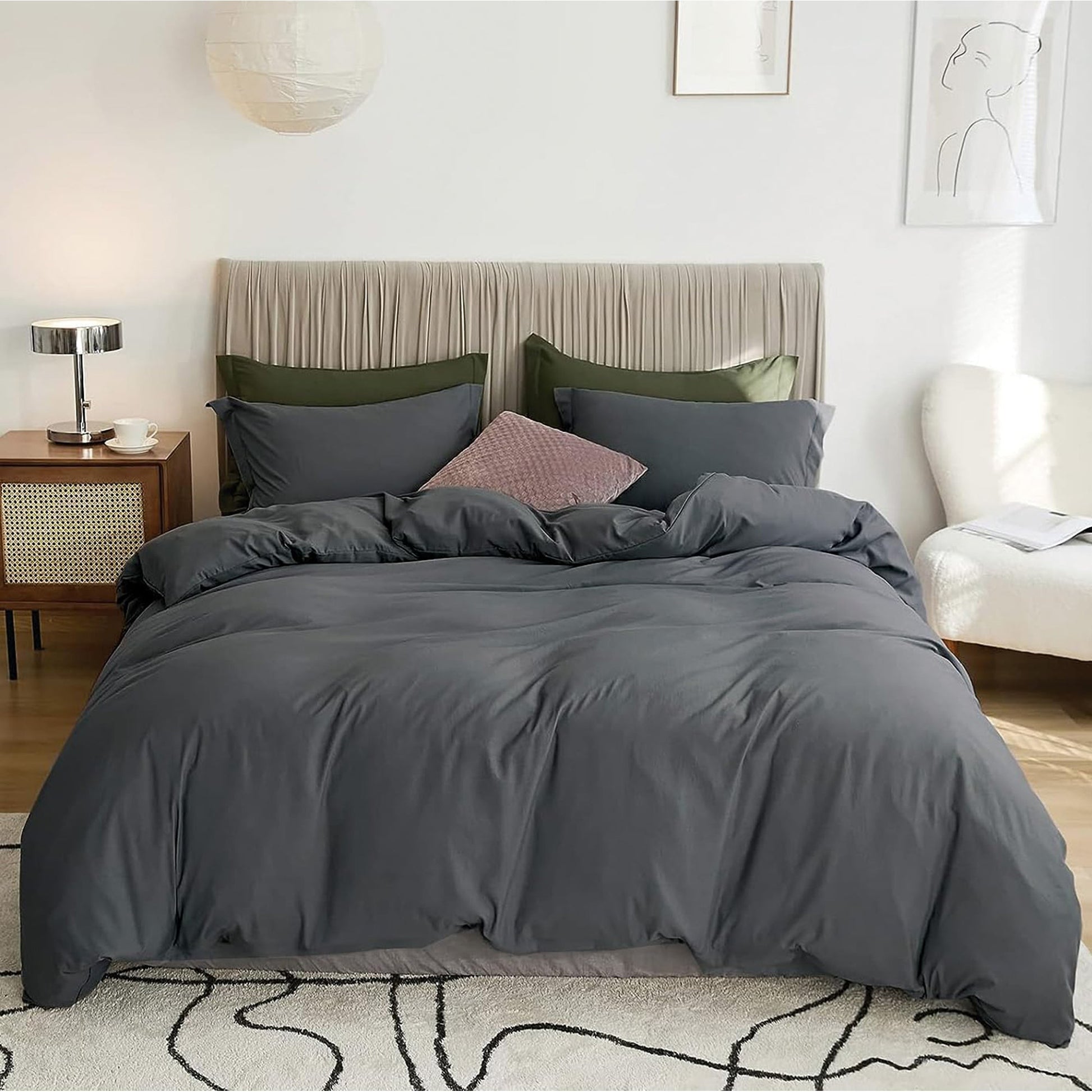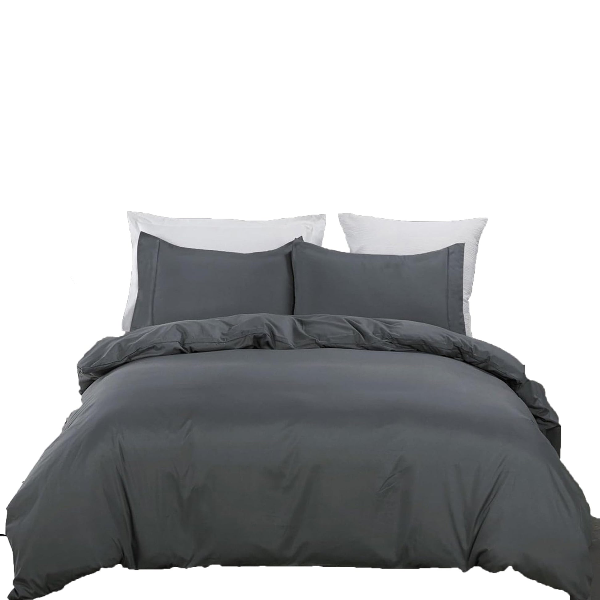 2000TC Ultra Soft Microfiber Zipper Closure Quilt Cover Set - Dark Grey