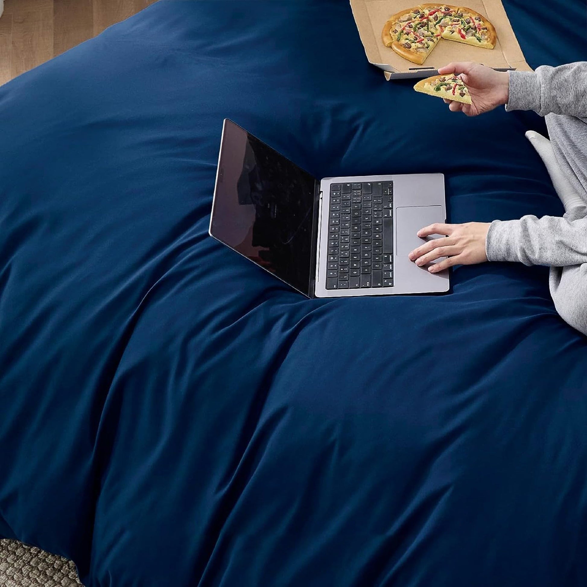 2000TC Ultra Soft Microfiber Zipper Closure Quilt Cover Set - Navy