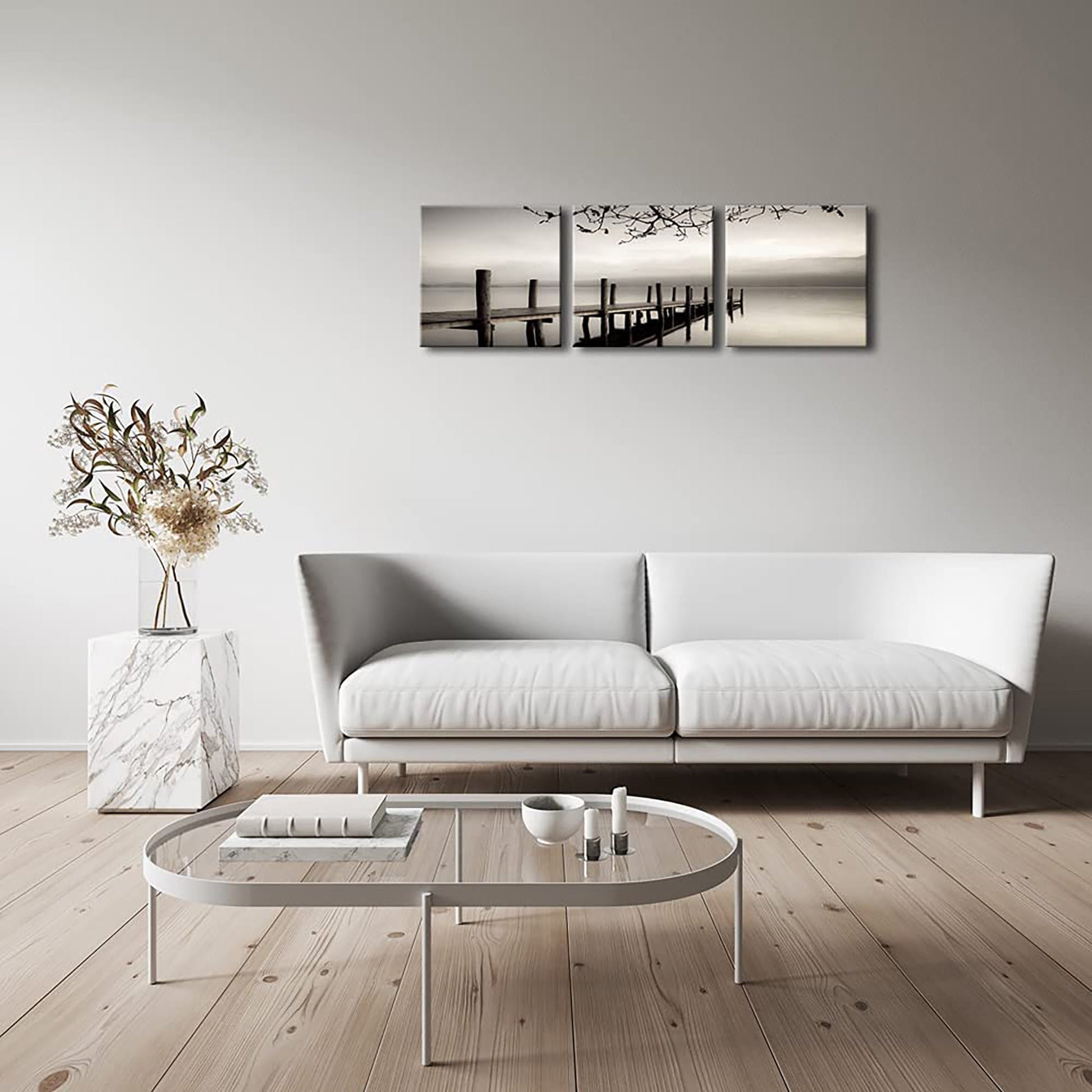 Black and White Landscape Giclee Canvas Prints on Modern Stretched Paintings Artwork - 3 panels