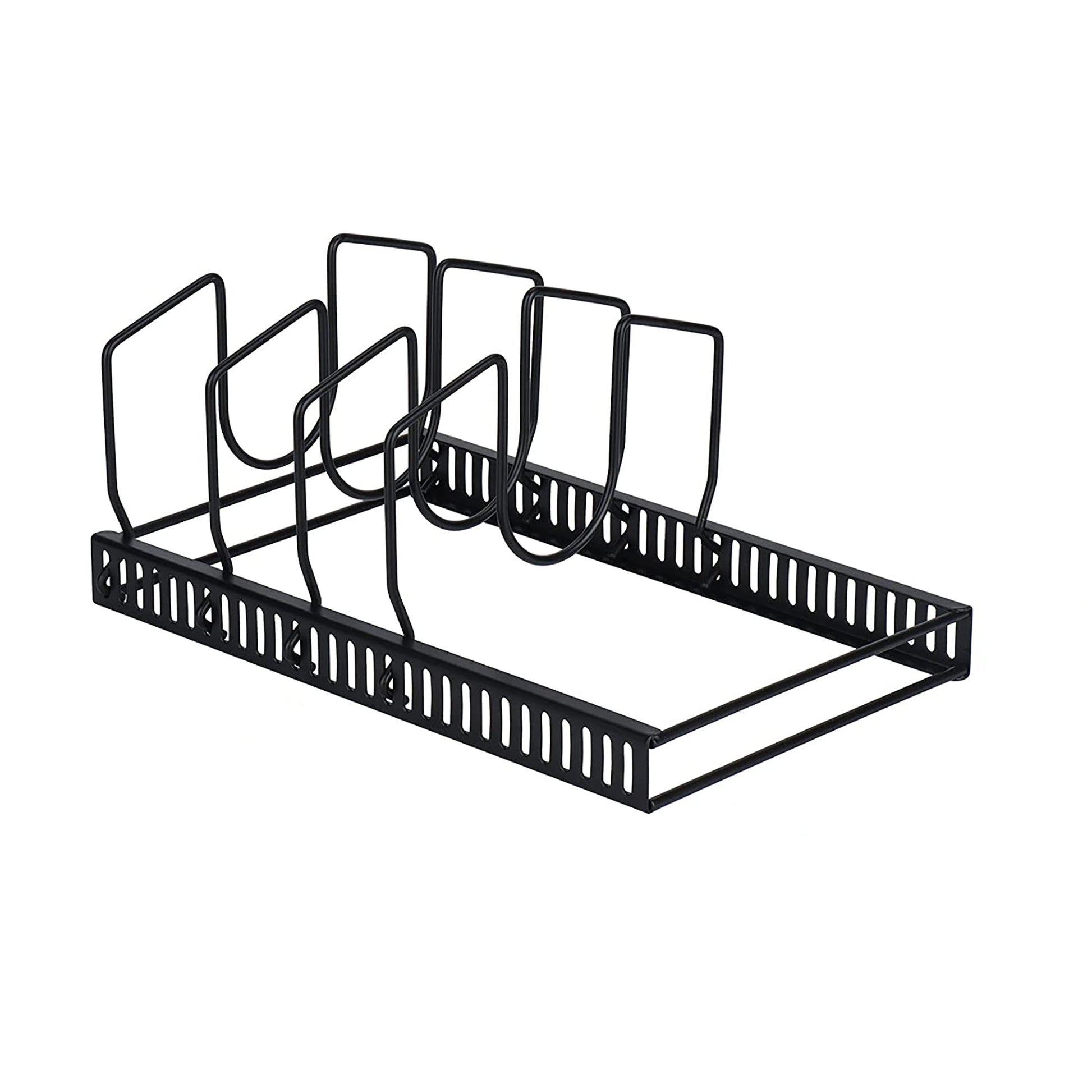 Adjustable Kitchen Lid Organizer with 7 Adjustable Compartments for Pantry or Cabinet - Black