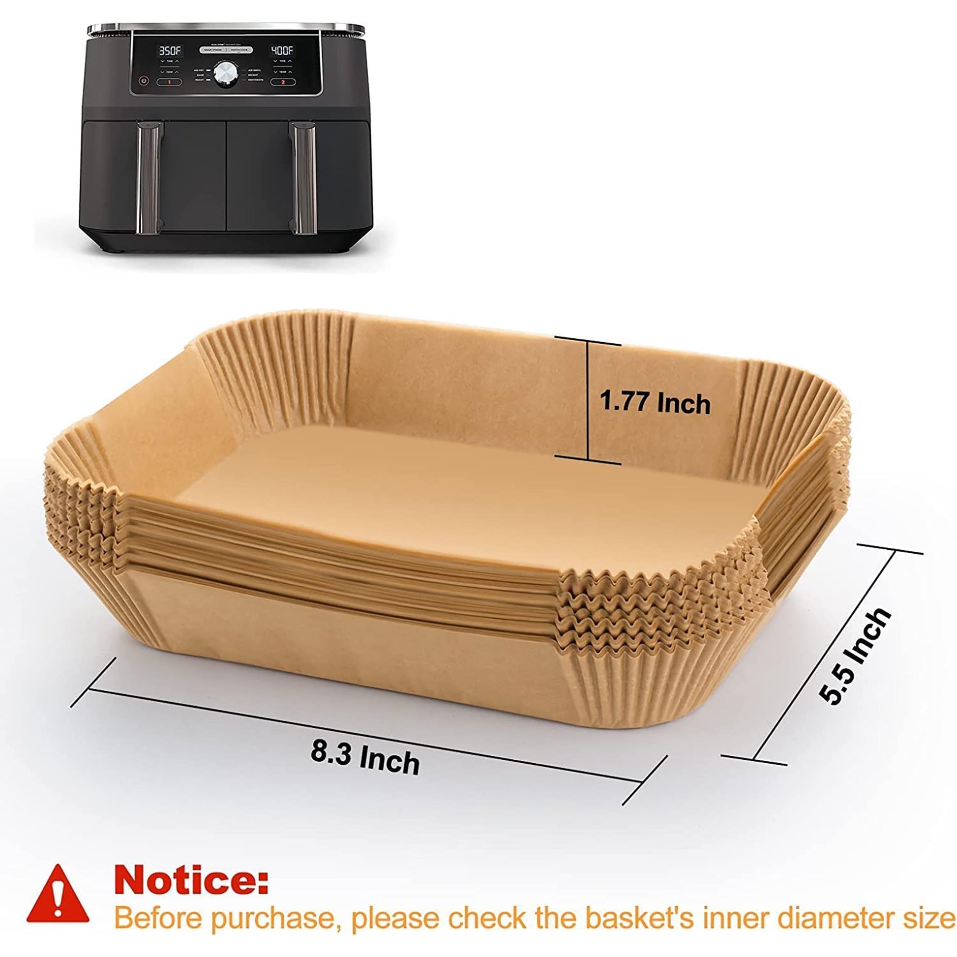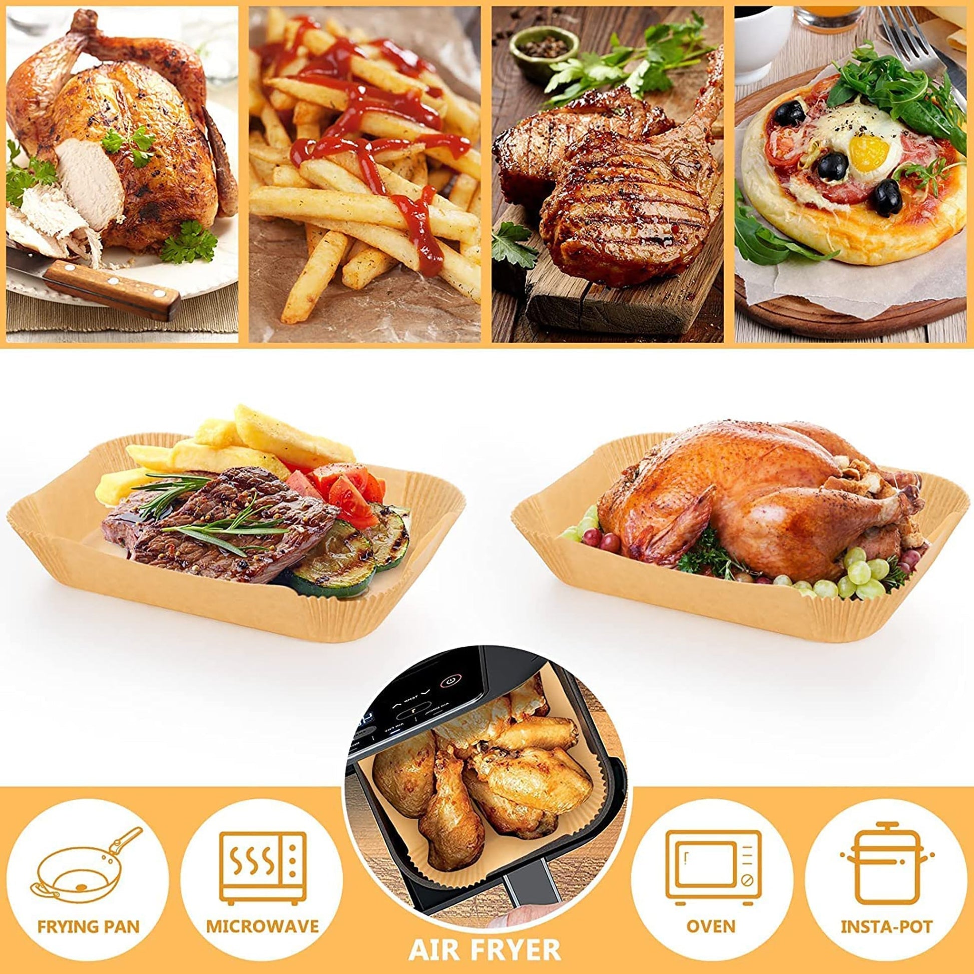 -Easy to Use: These non-stick disposable air fryer paper liners are designed with a square bowl shape, which does not need to tear, fold, cut, or bend. Notice: Do not use this liner in a pre-heat mode without food.
