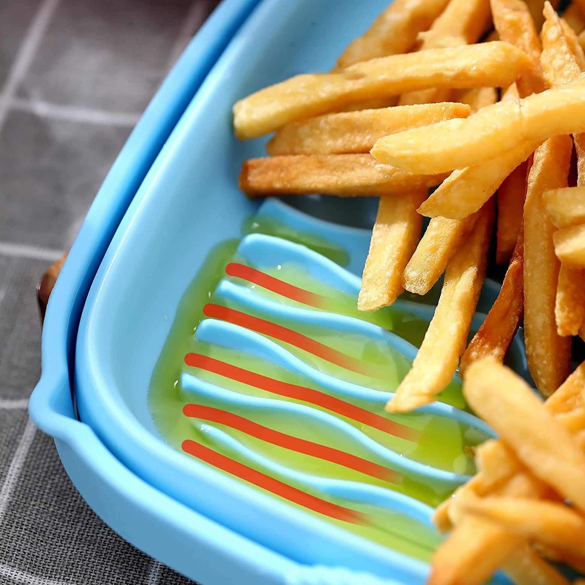 -Improving New Design: The designed with many silicone lines for improving air circulation and heat distribution to cook your food in less time, and make residual oil or grease easy to flow out to enjoy healthier foods. Foldable design, easy to store, and space-saving.