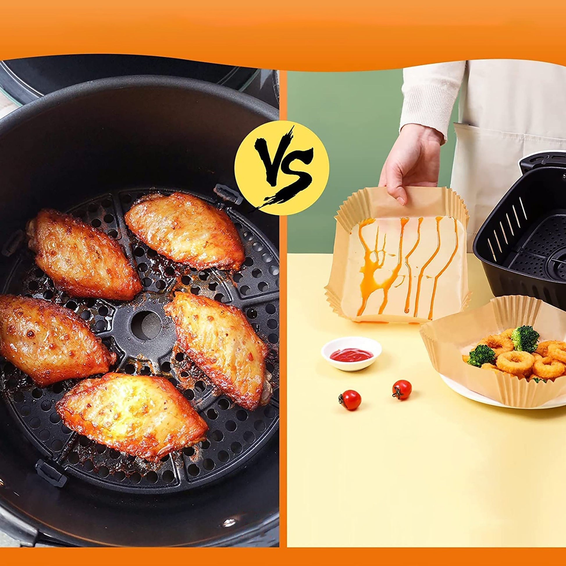 -Easy to Use: These non-stick disposable air fryer paper liners are designed with a square bowl shape, which does not need to tear, fold, cut, or bend. Notice: Do not use this liner in a pre-heat mode without food.