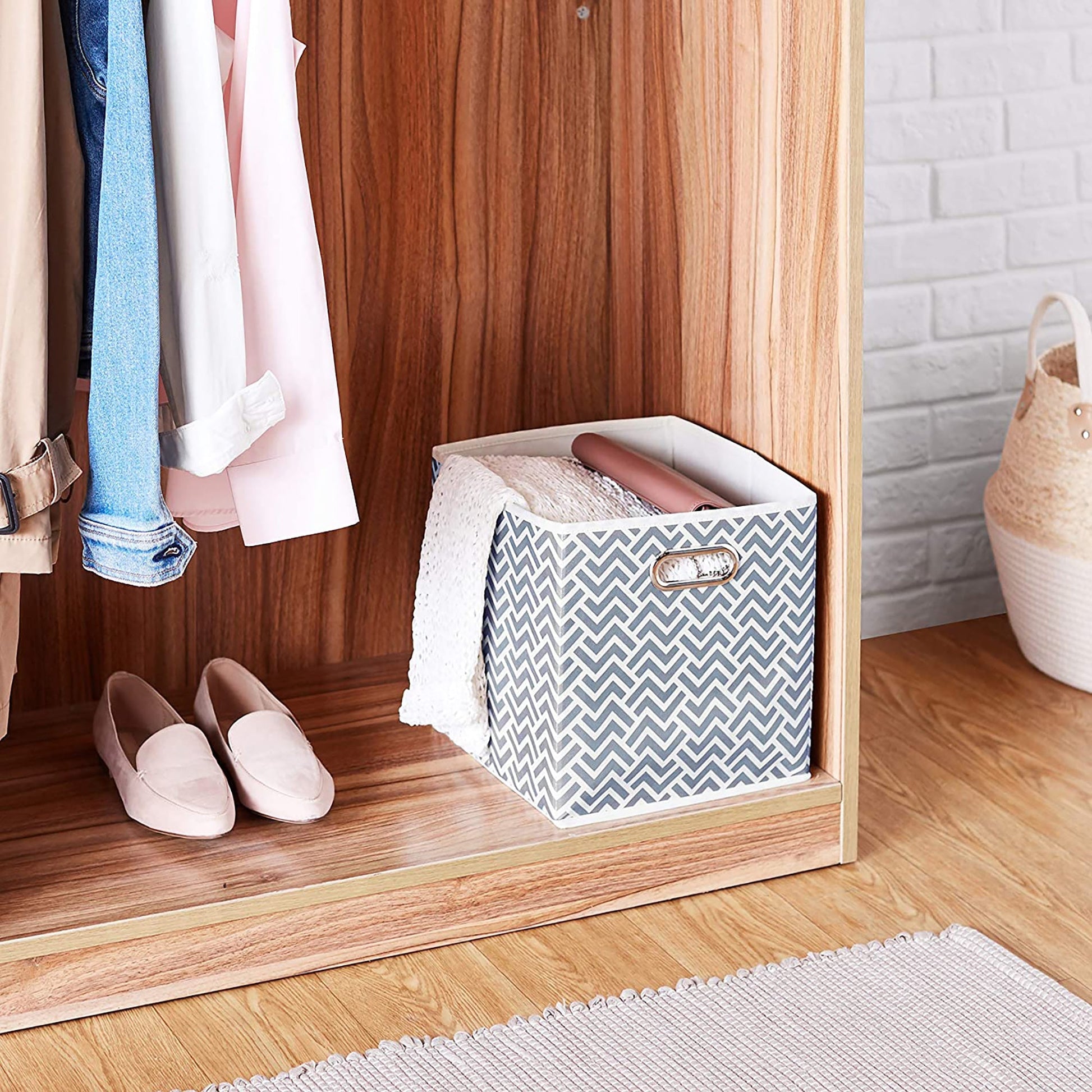 Collapsible Fabric Storage Cubes with Oval Grommets 6-Pack - Chevron Grey