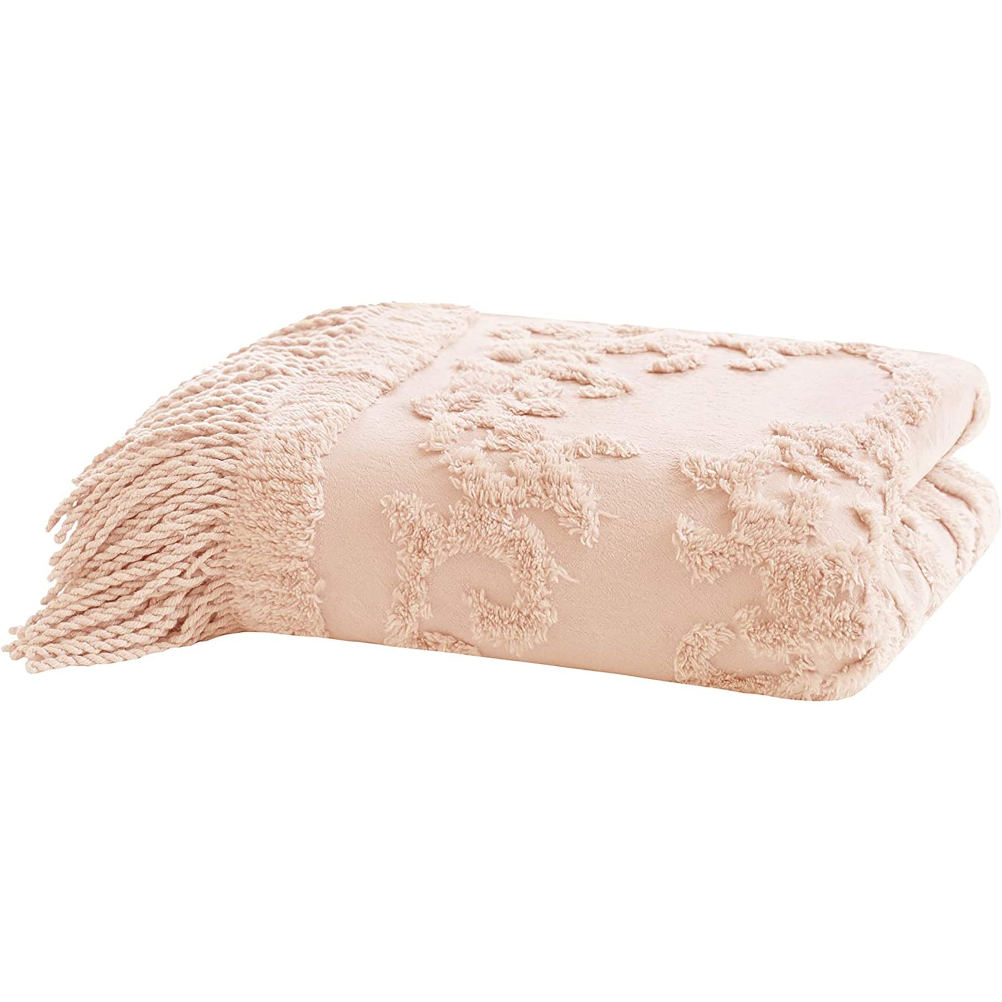 Cotton Tufted Chenille Design with Fringe Tassel Luxe Cottage Room Blanket - Blush