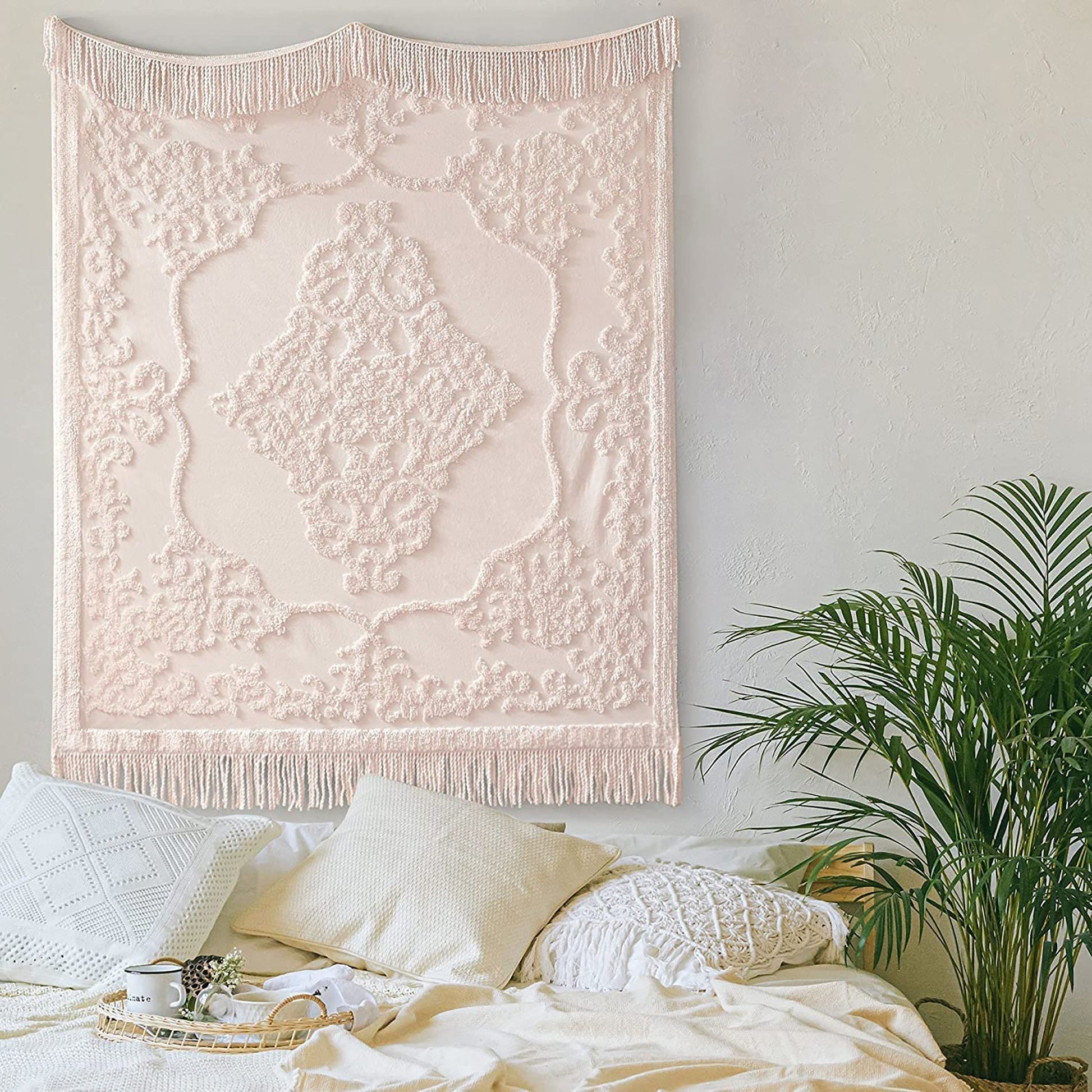 -This blush cotton throw flaunts a tufted chenille design with a 4-inch fringe on each end that adds texture and dimension, for a charming country allure. -Bohemian medallion design throw, can also double as a tapestry to accent your home decor.