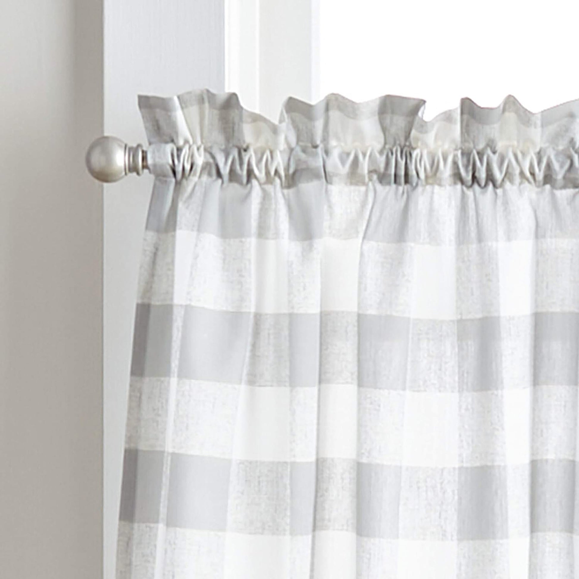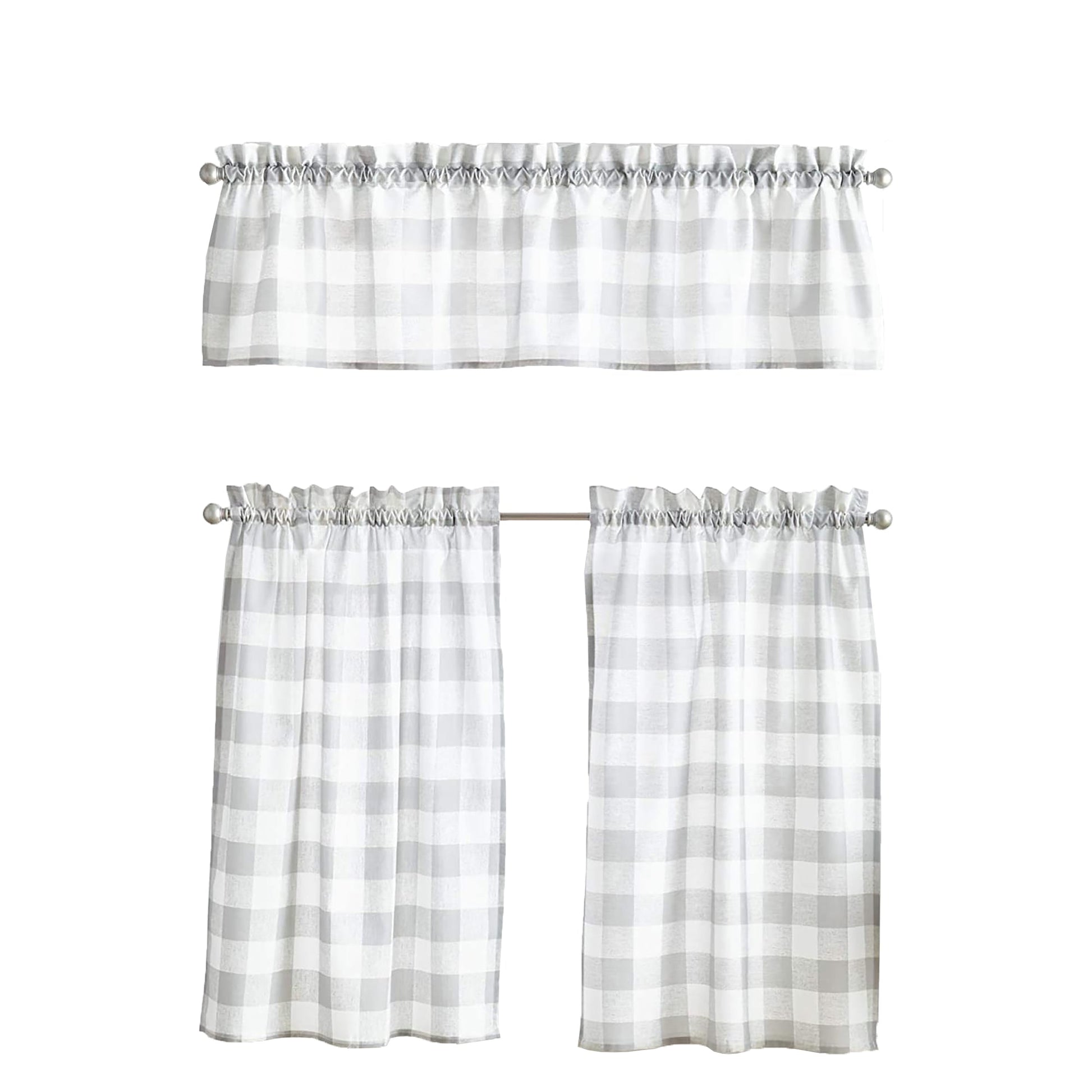 Country Modern Rustic Farmhouse Check Curtain Window Valance and Tiers Set - Grey