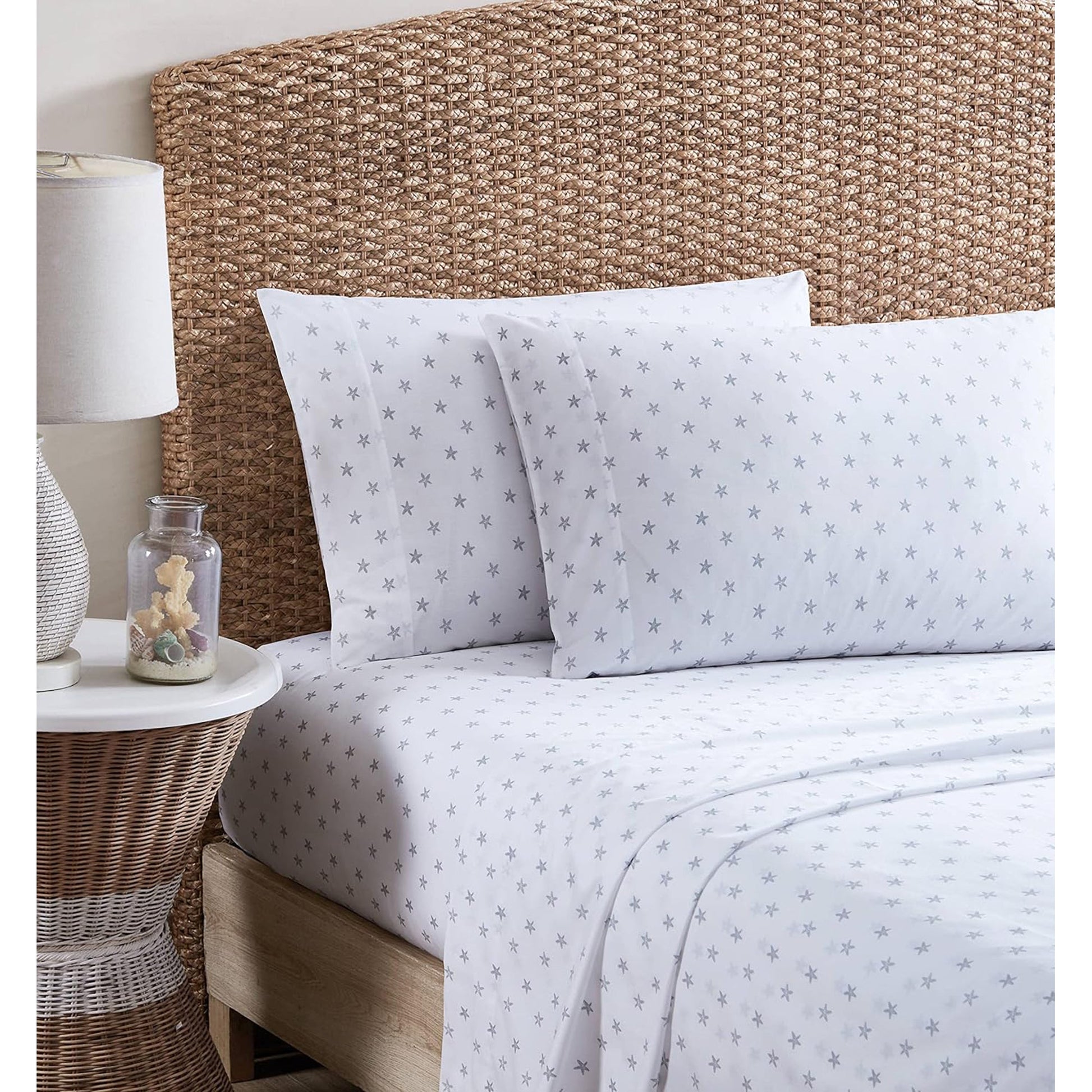 Crisp and Cool Cotton Percale Stylish Bed Sheet Set - Starfish Treasure Grey
