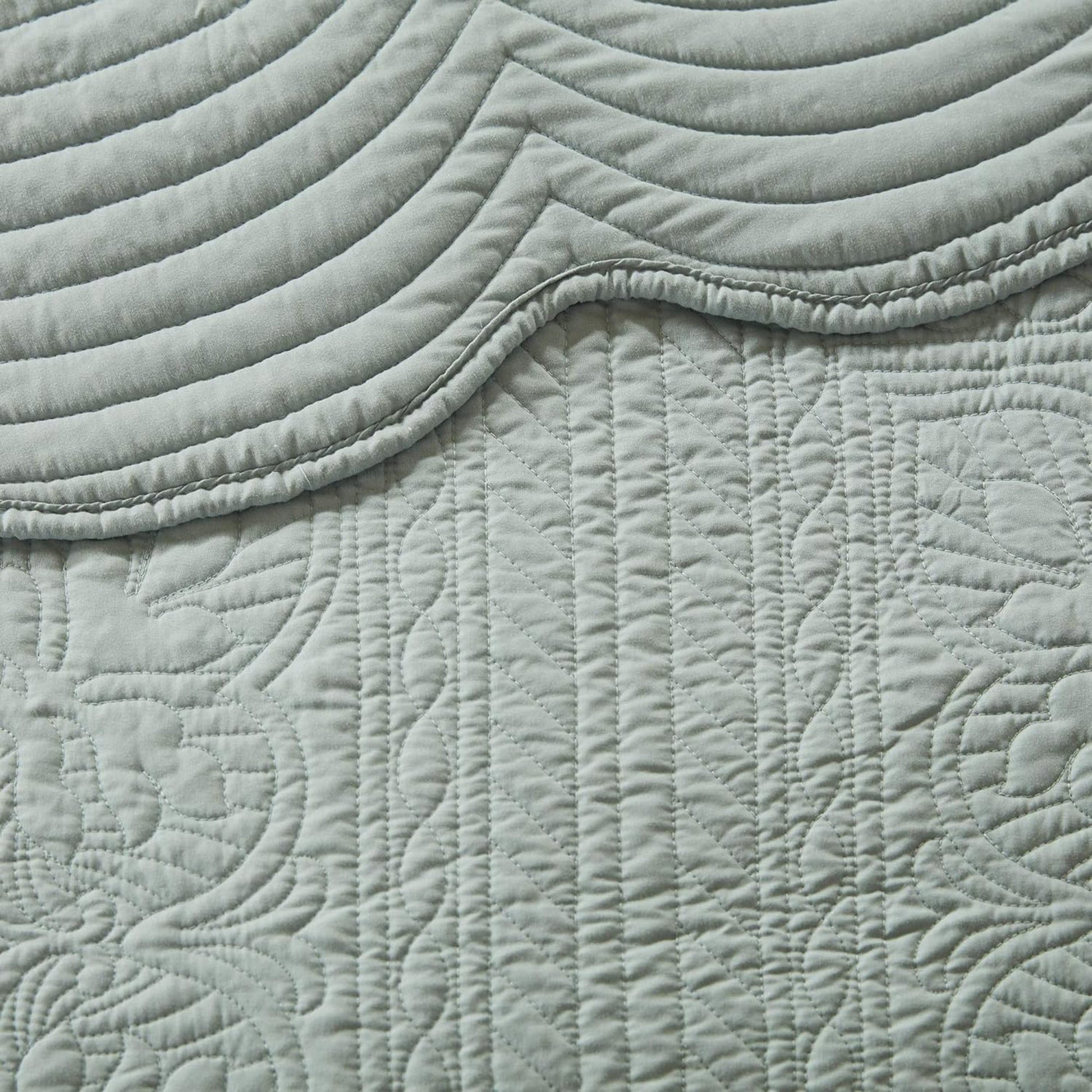Damask Medallion Stitching Tuscany Coverlet Set - Medallion Seafoam