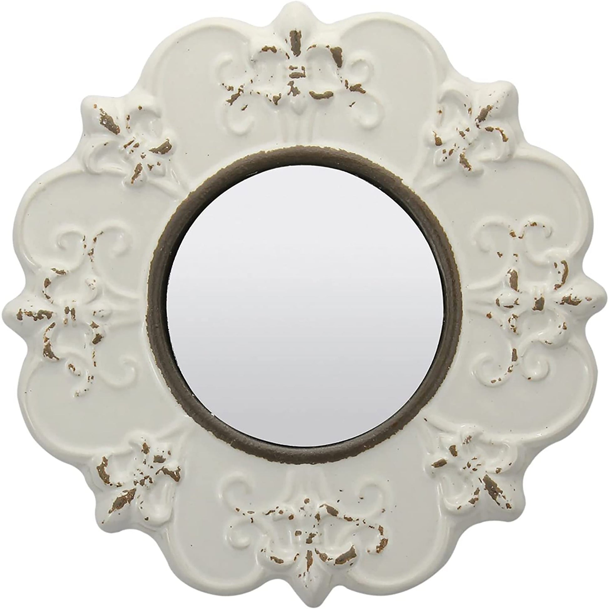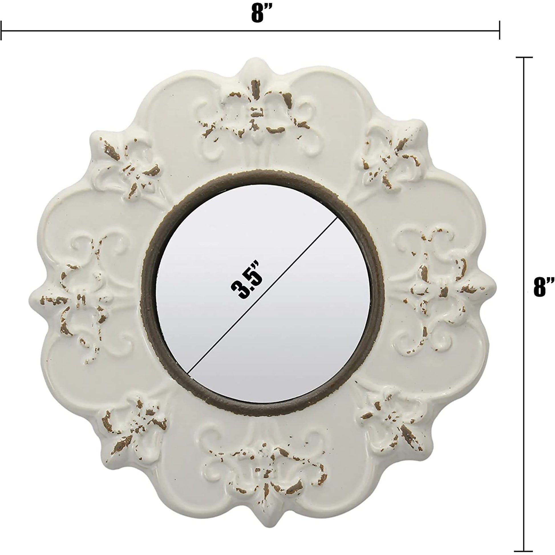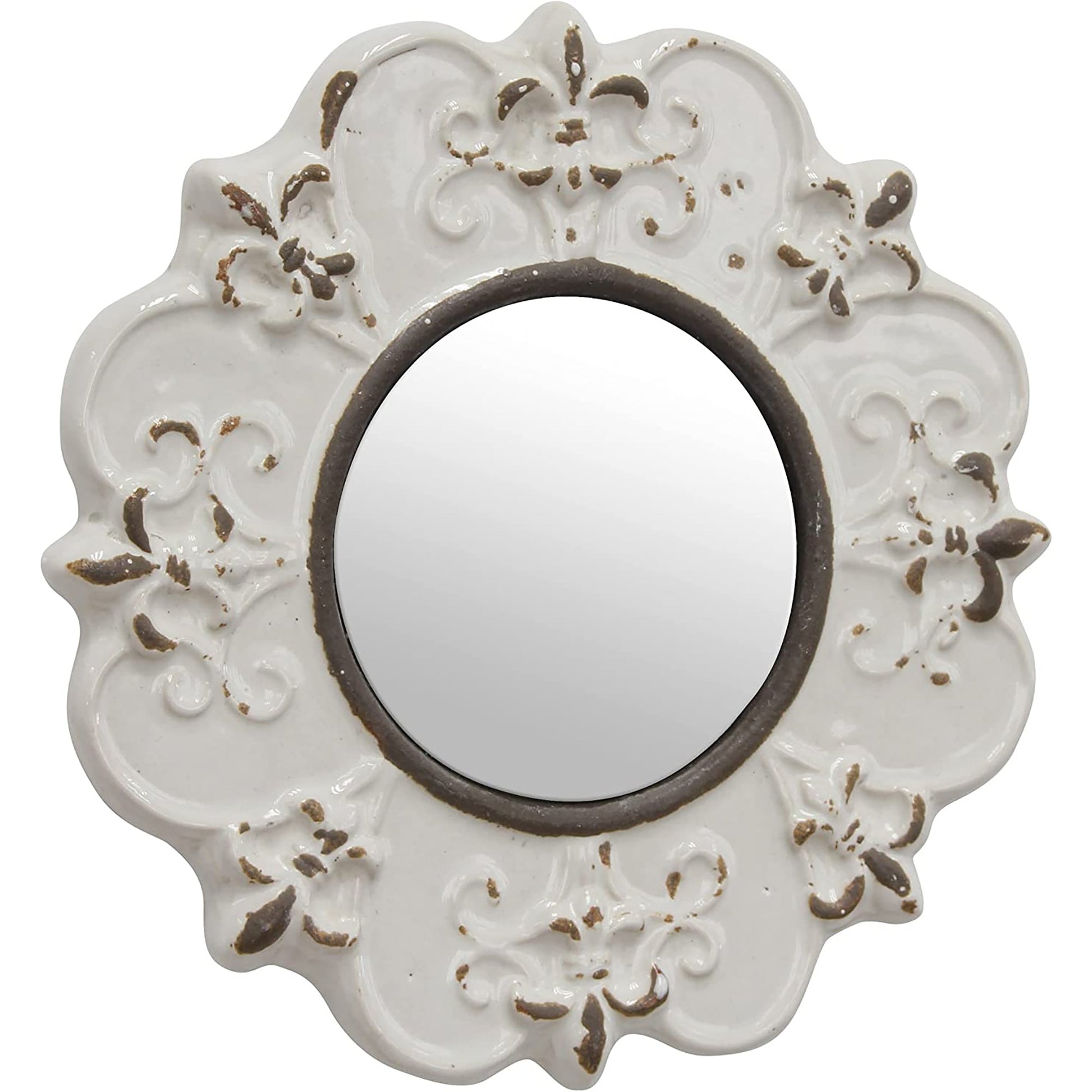 Decorative 8 Inch Antique White Round Ceramic Accent Wall Mirror