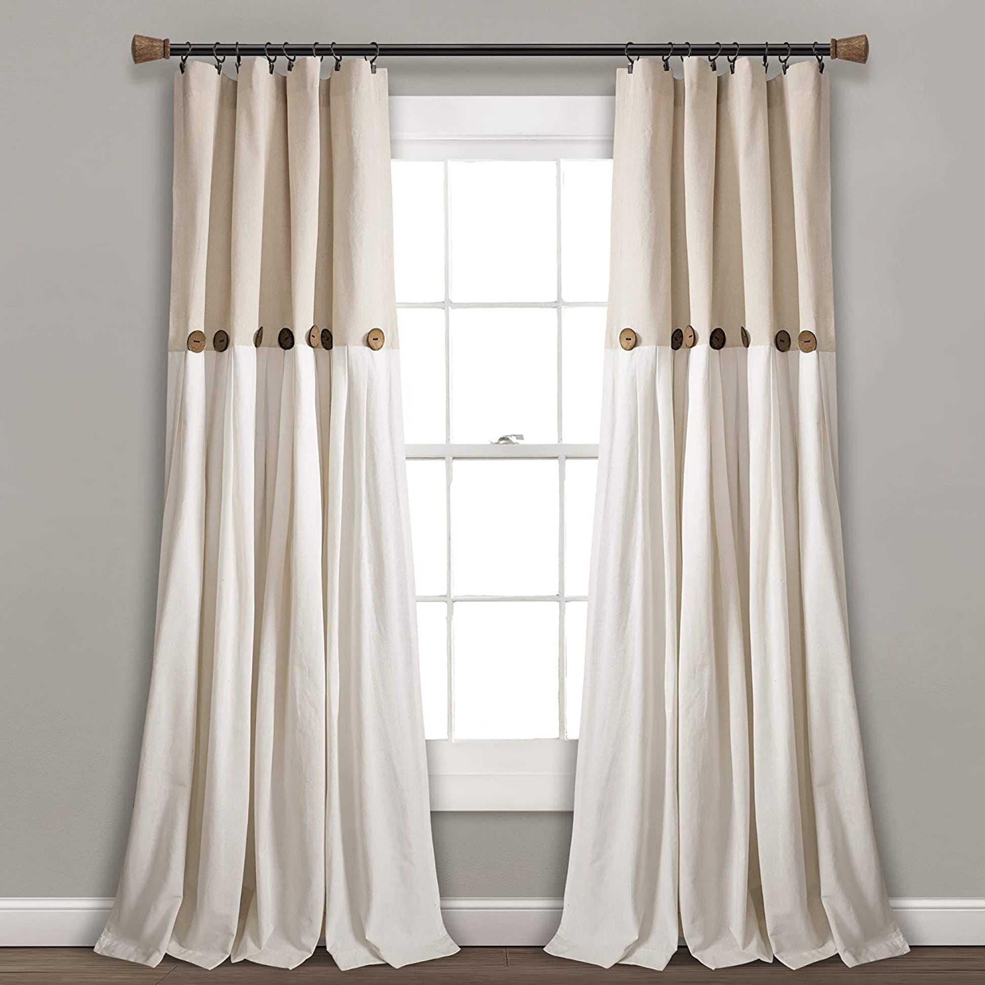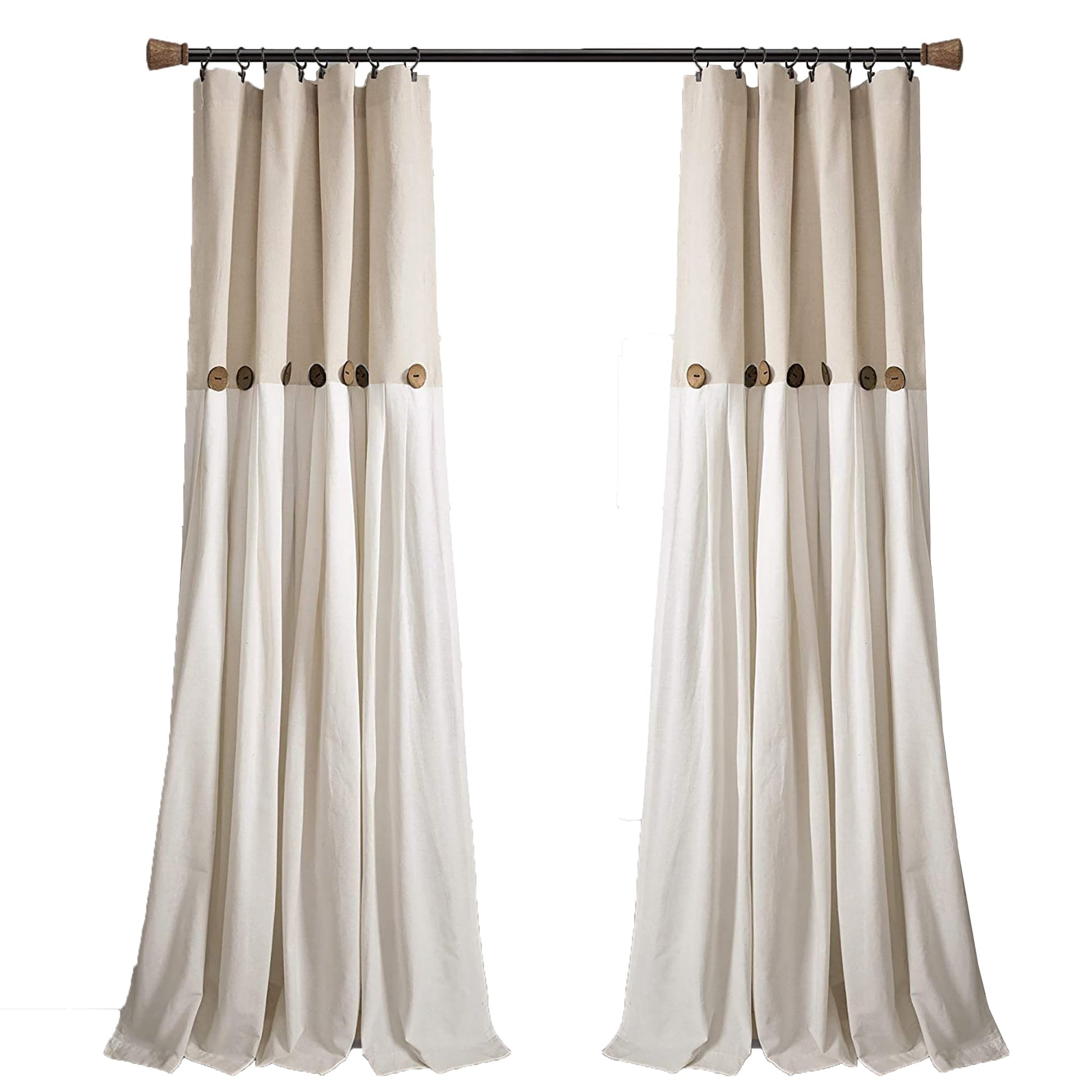 -Add the elegance of linen to your home with these farmhouse chic curtains. Color blocking is always in style and we love the details of pleats and buttons. Slight weave variations are authentic to this natural fiber blend and create a one-of-a-kind look.