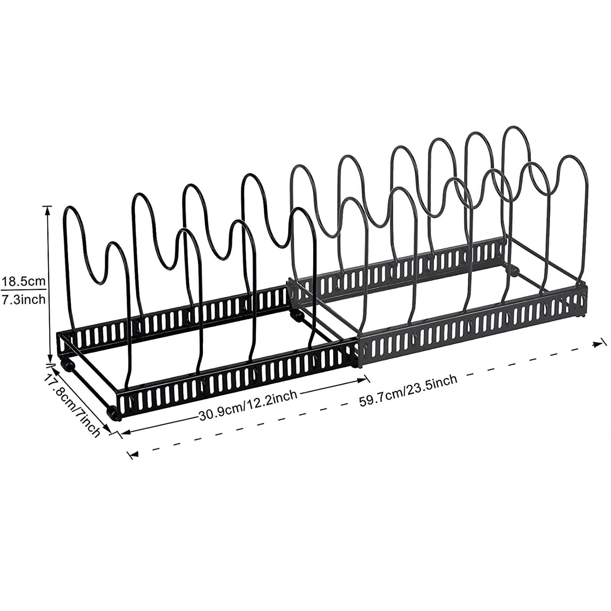 Expandable Pans Organizer Rack with 10 Adjustable Compartments for Pantry or Cabinet - Black