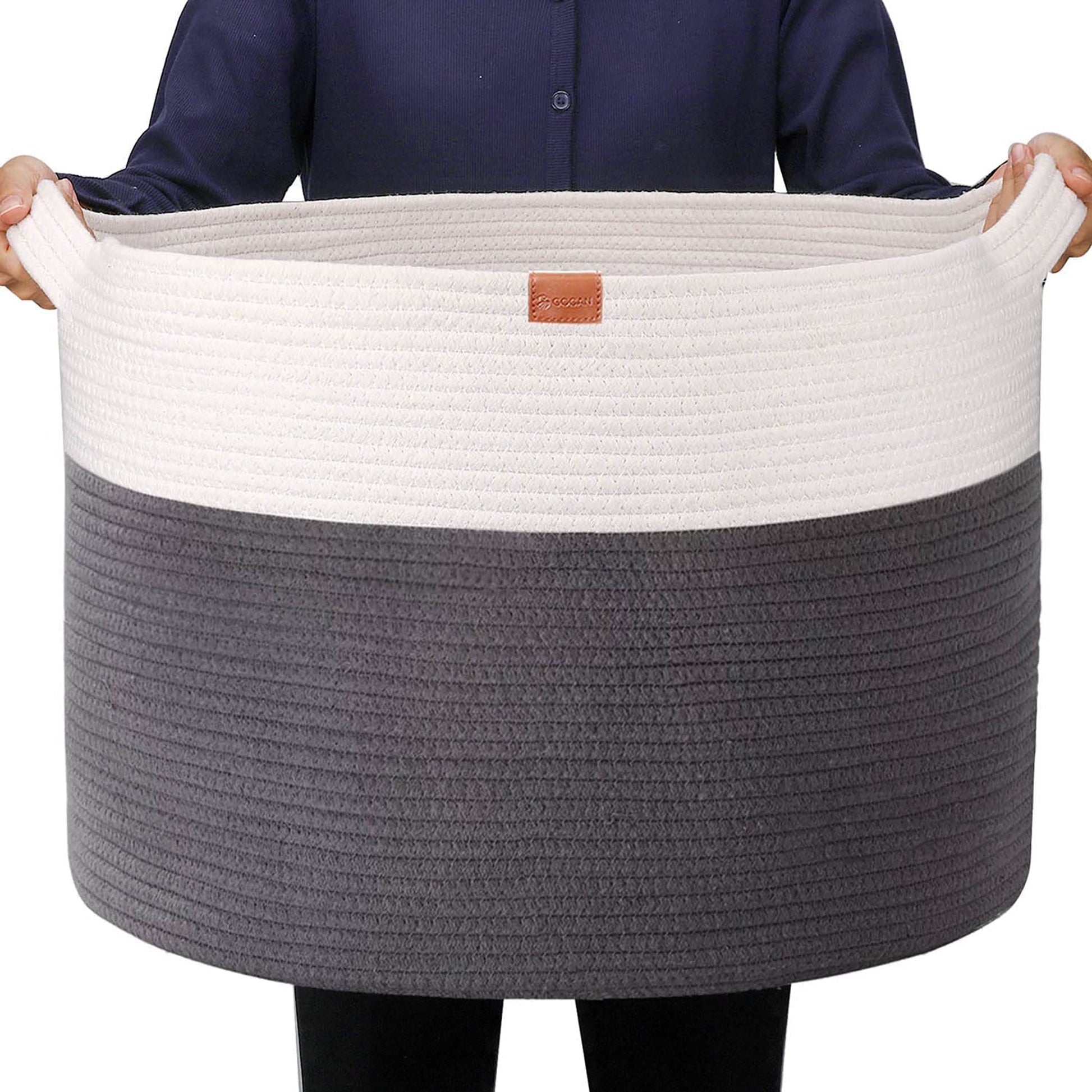 Extra Large Rope Woven Baskets with Handles for Living Room 22x22x14 - Beige and Grey