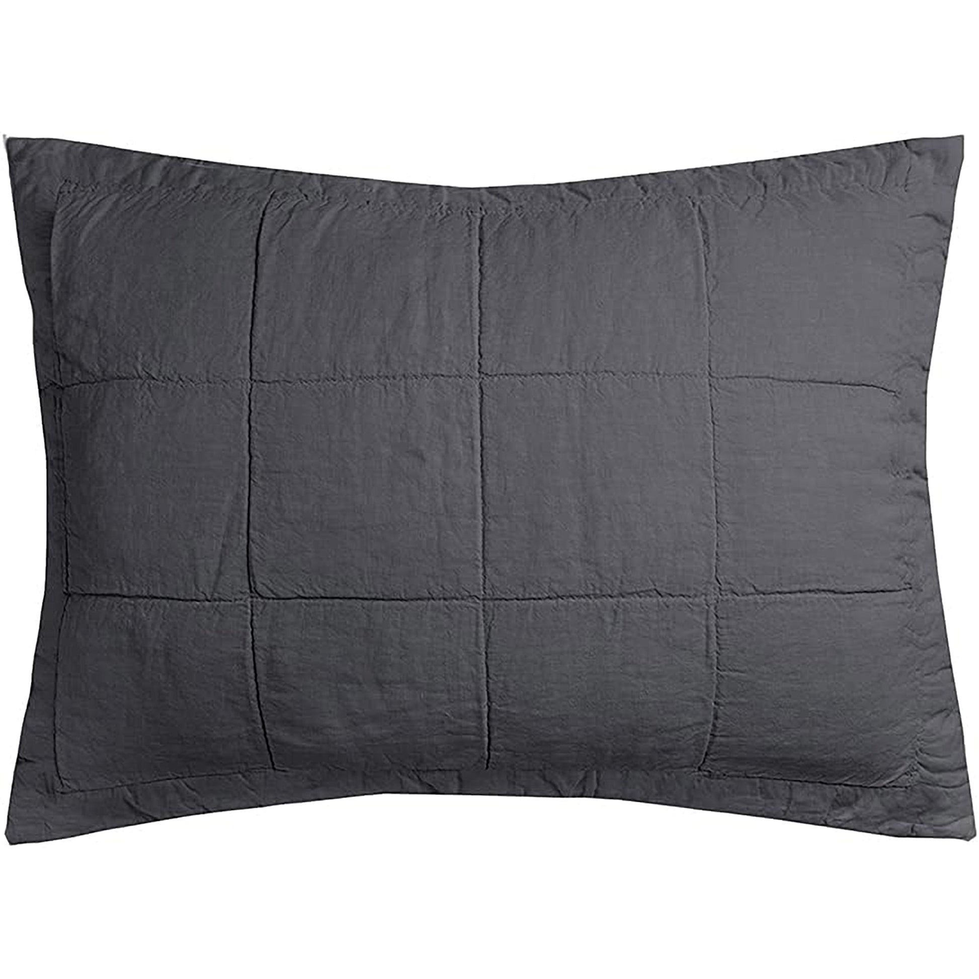 French Flax Linen Quilted Pillow Sham - 48 x 73 cm