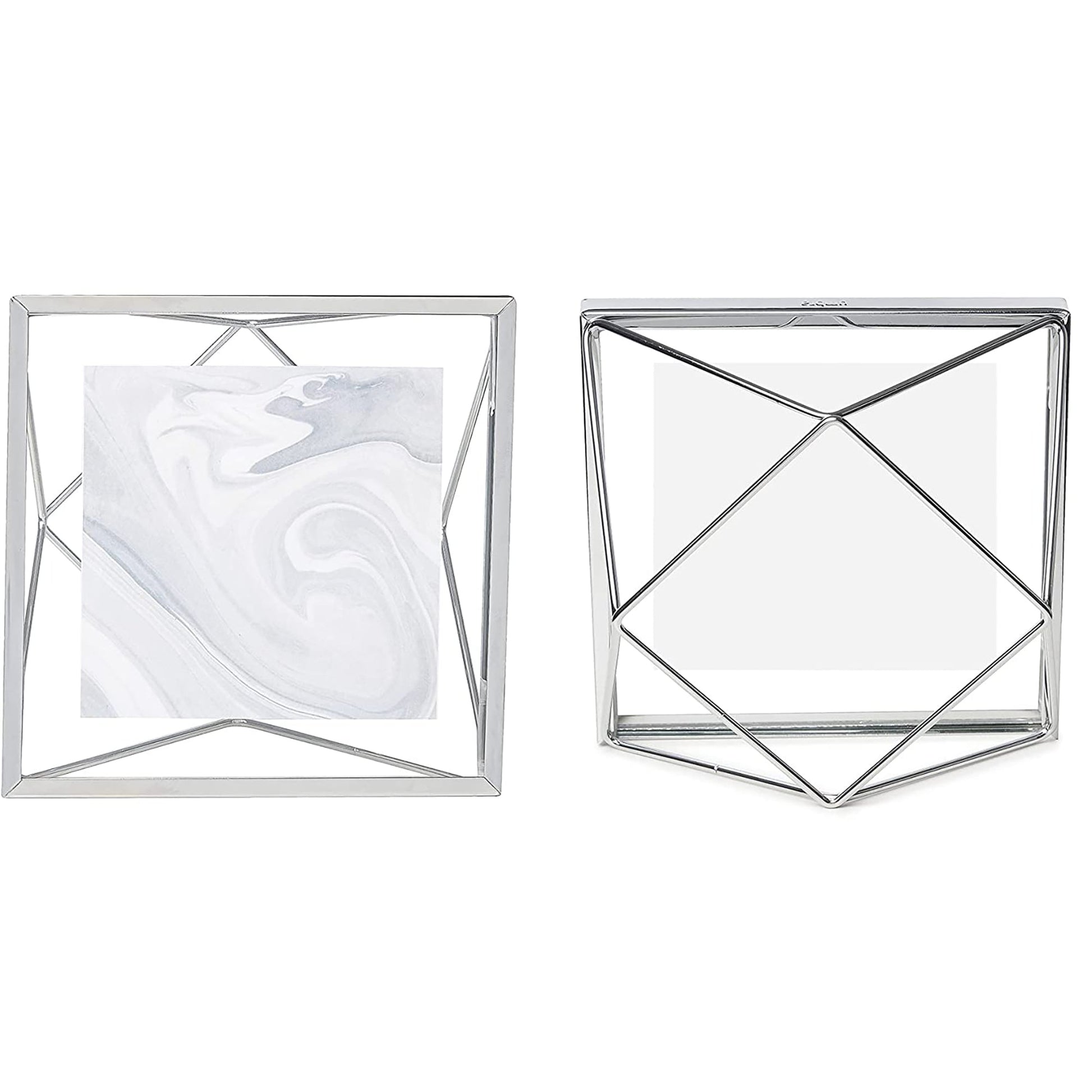 Geometric Picture Frame Prisma Picture Frame Photo Display for Desk or Wall Photo Display 4x4- Silver