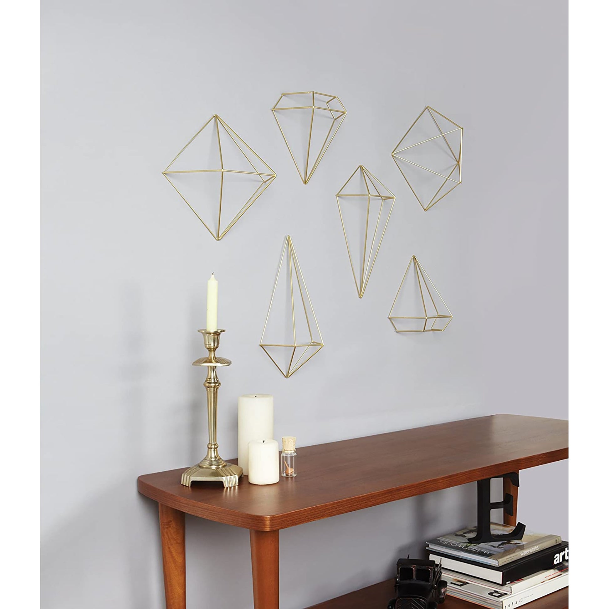 Geometric Sculptures Modern Metallic Wire Shapes Wall Decor Set of 6 - Matte Brass