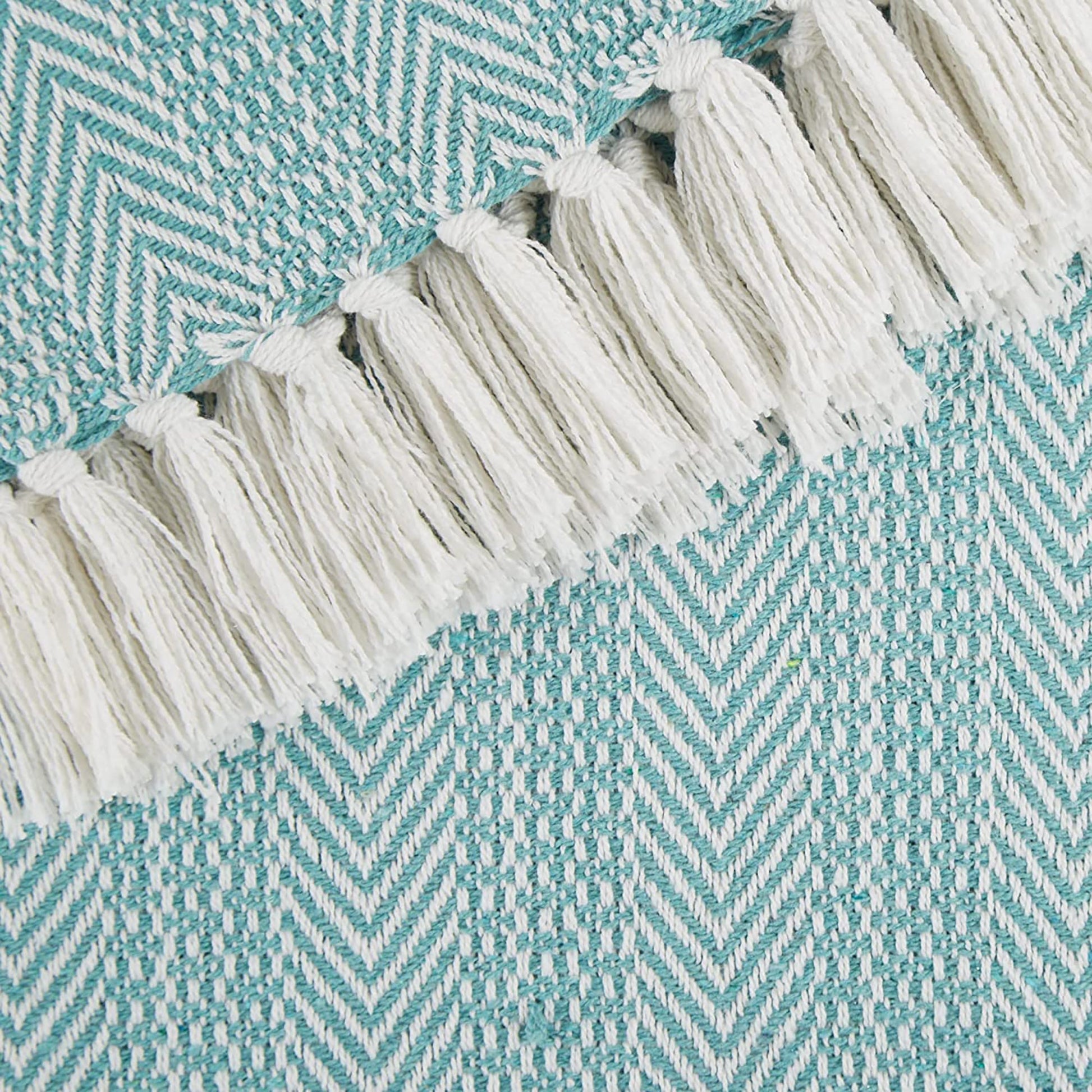 Herringbone Striped Throw Blanket with Decorative Tassels for Chair Couch - Aqua