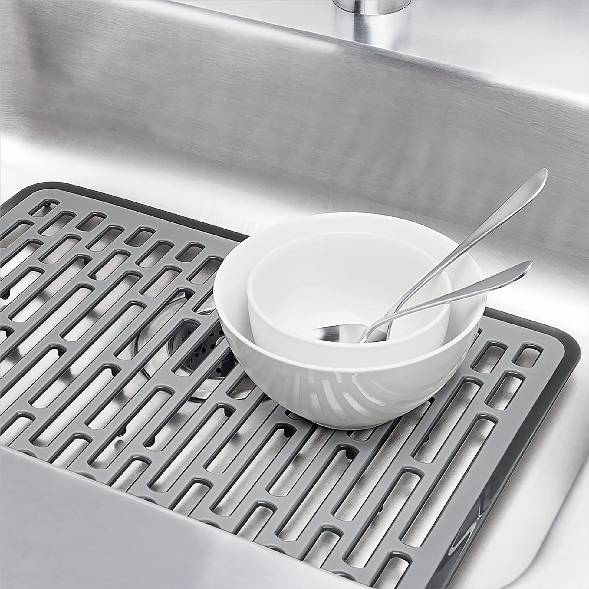 -Protect dishware and sink surfaces from chipping, scratching and dents with this Large Sink Mat. This rigid, raised design allows drainage and airflow, promoting quicker drying.
