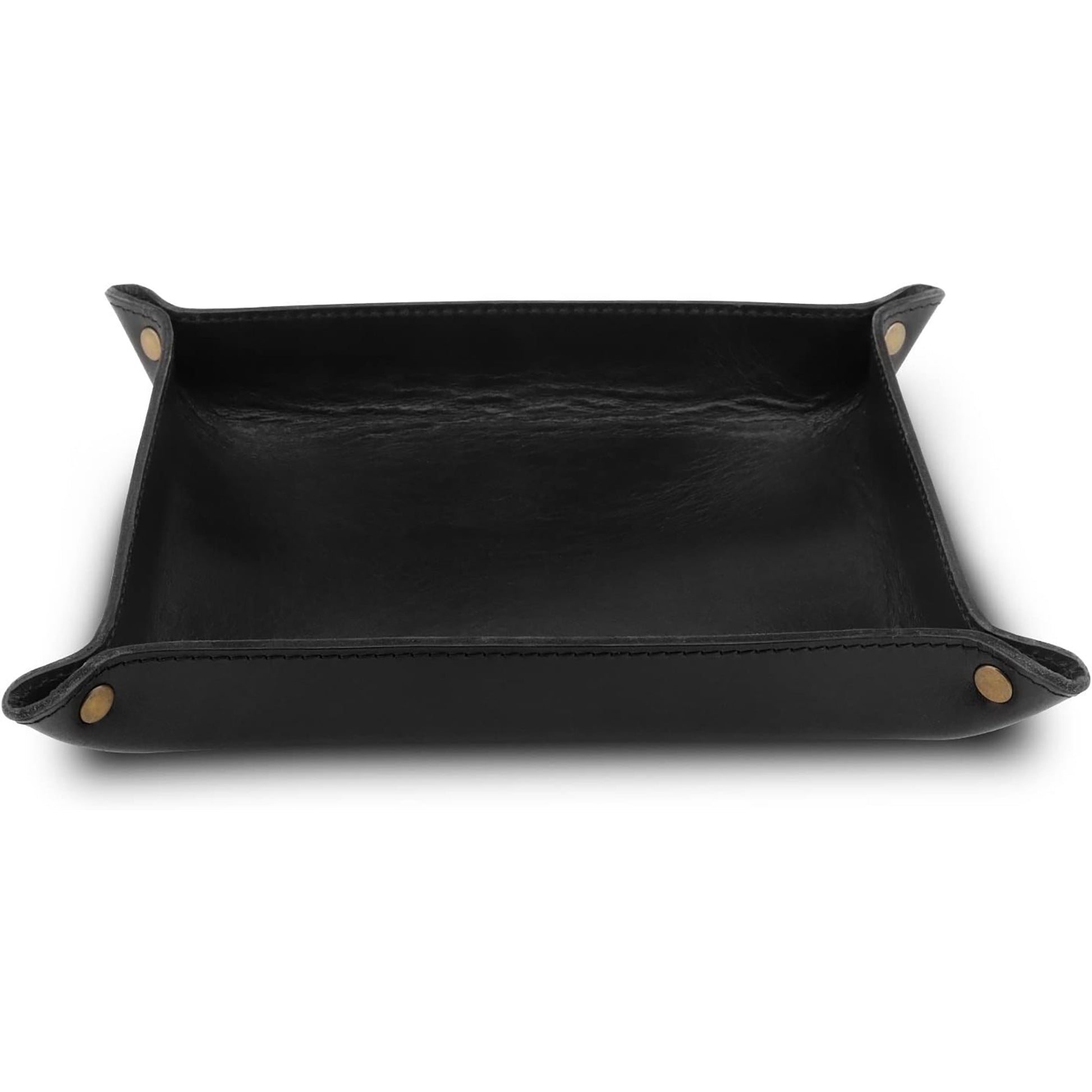 Leather Tray Organizer Storage for Wallets Watches Keys Coins and Phones - Black