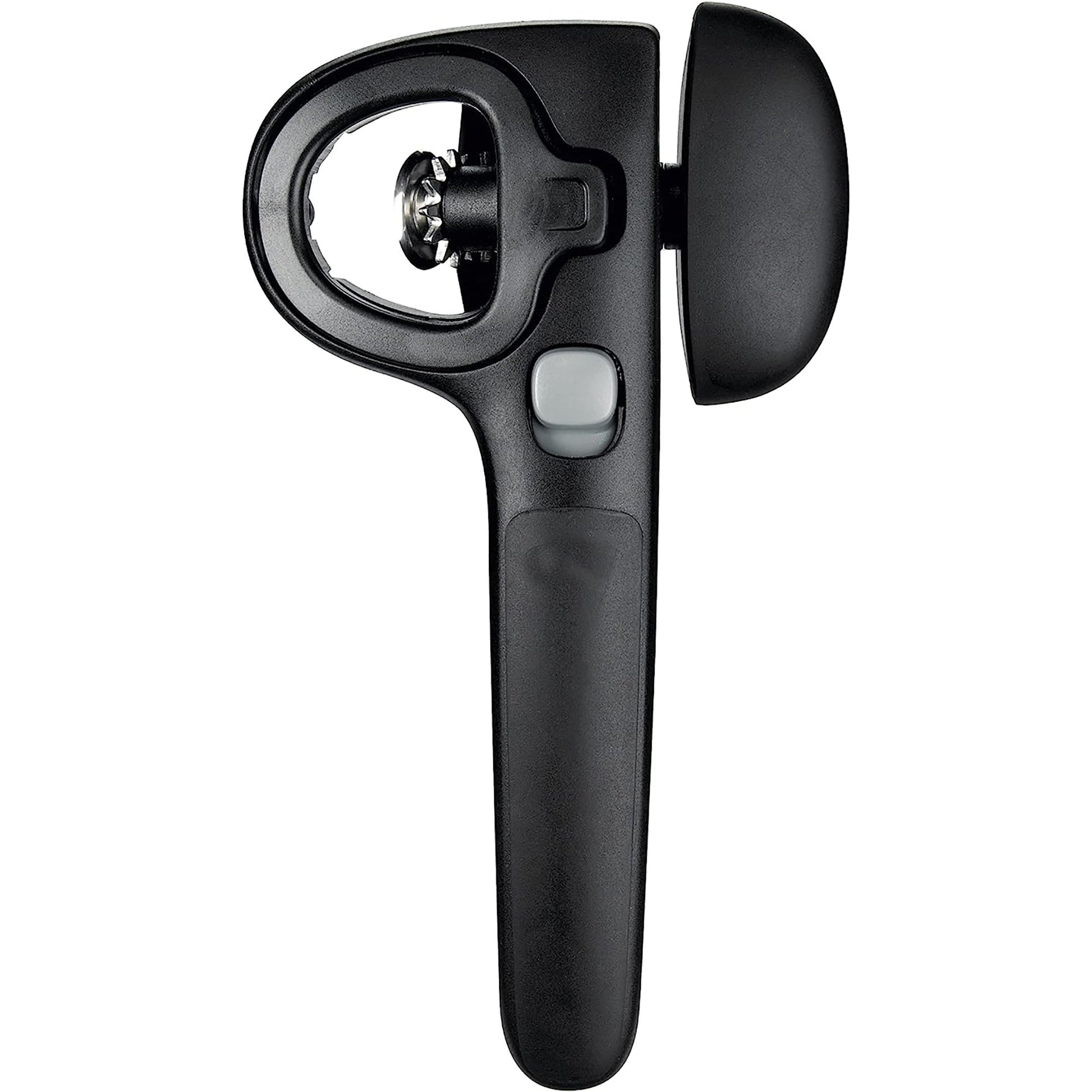 -Open canned goods with less mess and less fuss with this locking can opener with Lid Catch. The Opener features a sharp stainless steel cutting wheel that slices easily through cans and a magnet that lifts lids off for hands-free disposal, also ensuring that cut lids do not fall into cans. A window in the Opener top allows you to quickly align the Opener to the lip of the can and lets you see slicing progress so you know when it comes full circle. The soft, comfortable, non-slip handles feature a locking mechanism to keep them closed while the Opener is in use and a simple push of a button releases the lock when finished. The turning knob rotates smoothly and its oversized, contoured shape makes it comfortable to use.