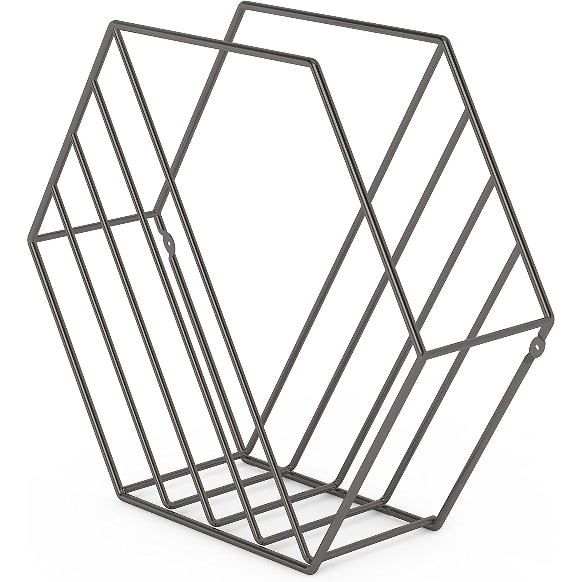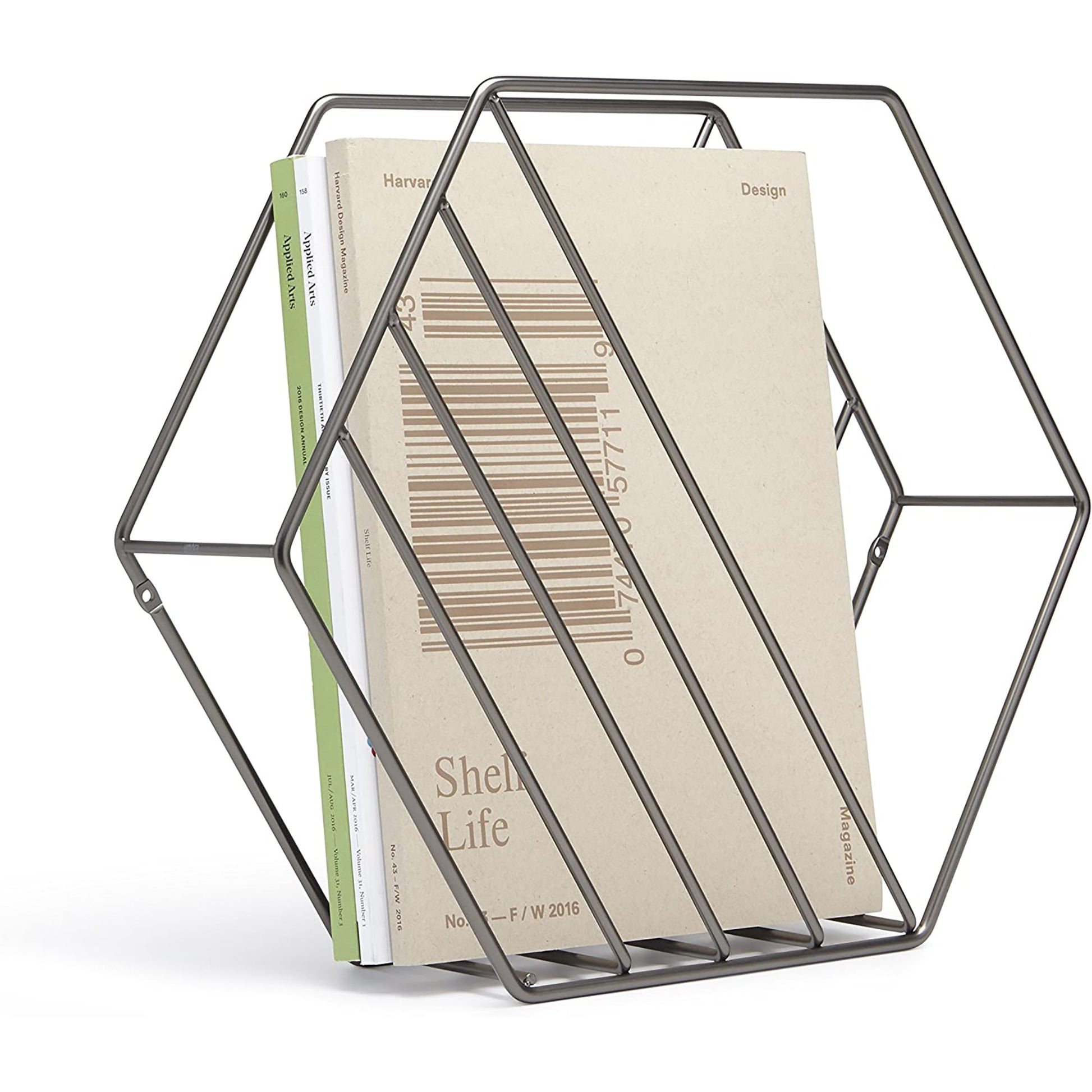 -A thoughtful approach to organization, this architectural magazine rack creates visual interest in any space.