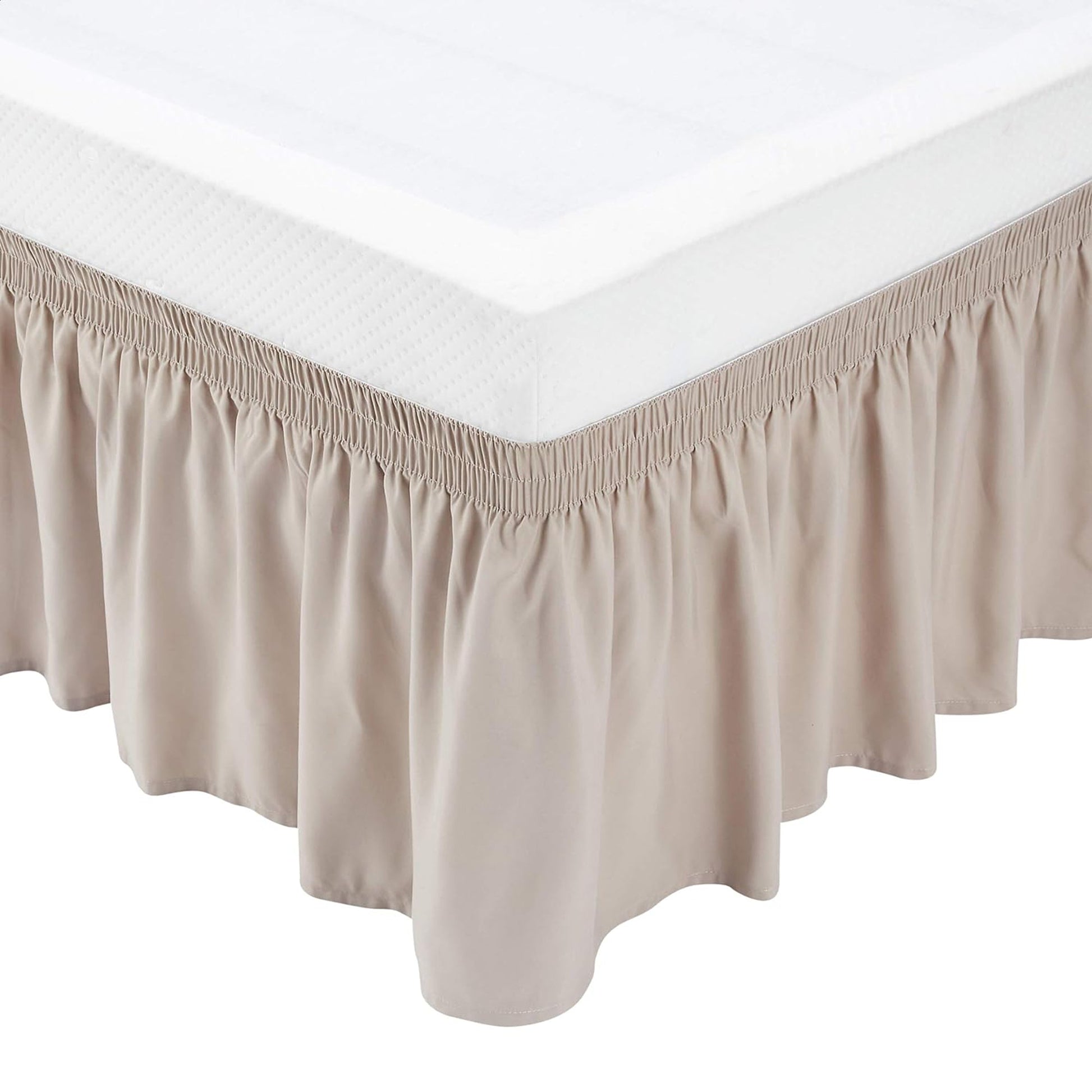 -Size: bed skirt with easy-fit, wide elastic band ensures simple, secure, adjustable wrap-around placement, no need to lift a heavy mattress