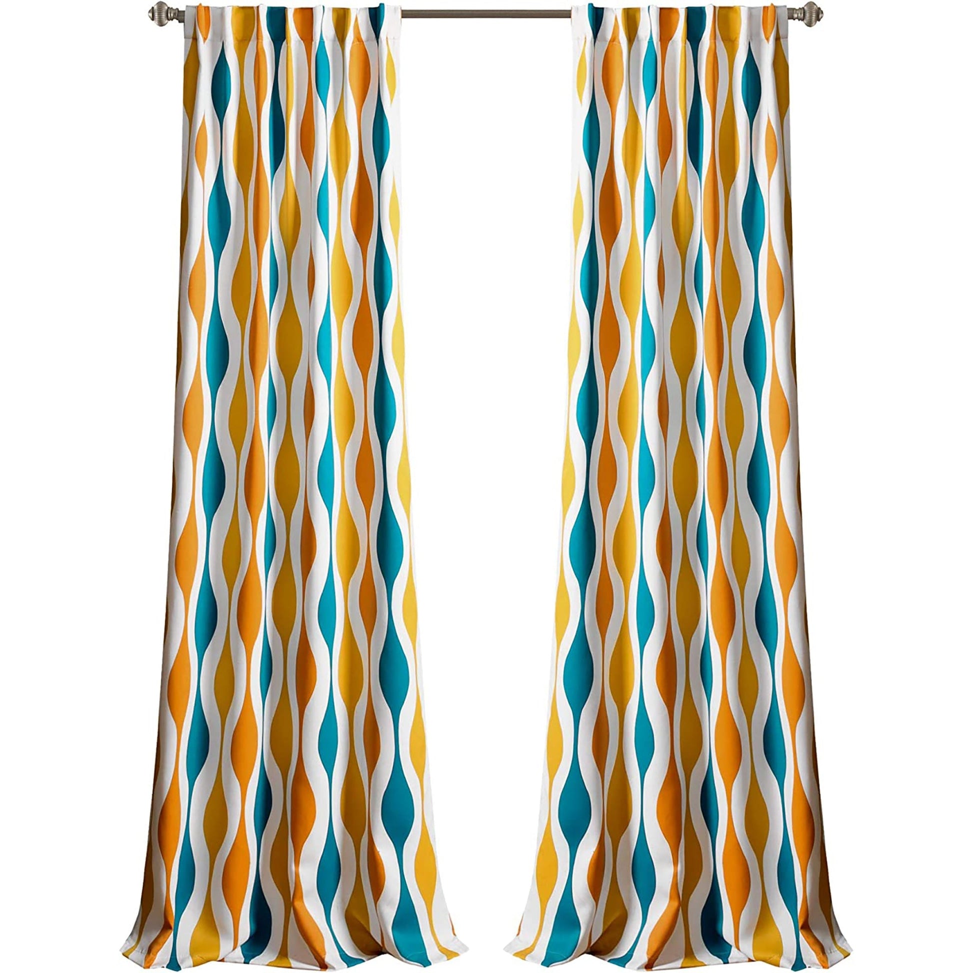 -These Mid-Century Geo curtains have a design with rippling stripes of color for a mix of modern and retro-style decor.