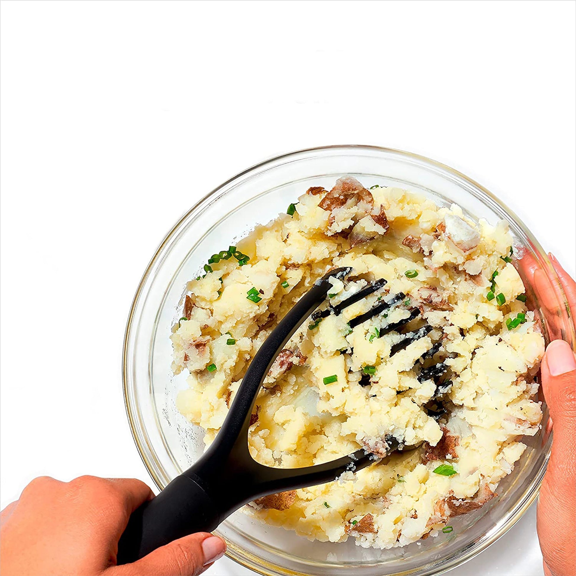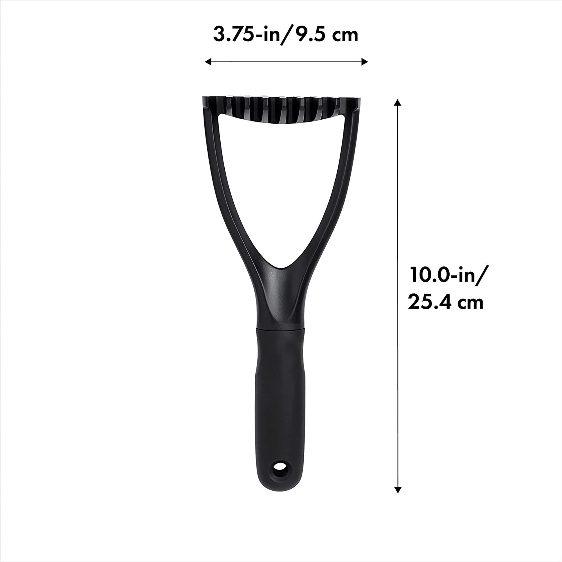 -This nylon potato masher has solved the problem of strength versus a creamy smooth mashed potato with a high-quality silicone grip and fluted blades on a platform base allowing the job to be done with ease. This range of superior kitchen tools is dishwasher safe and heat resistant to 200 c and ideal for use with all nonstick cookware. Hang from the convenient hanging loop for easy access.