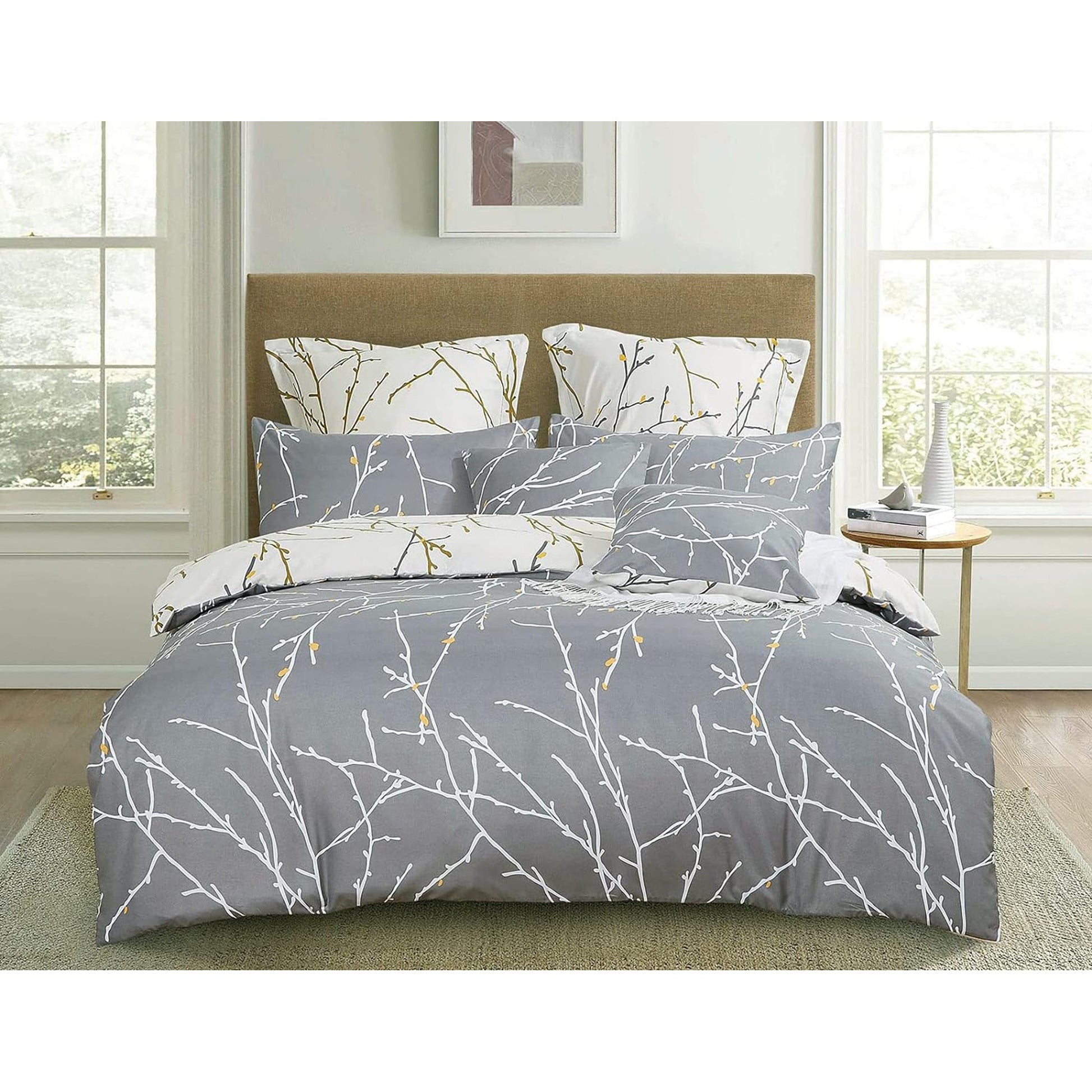 Polyester Reversible Quilt Cover Set - Tree Grey and Beige