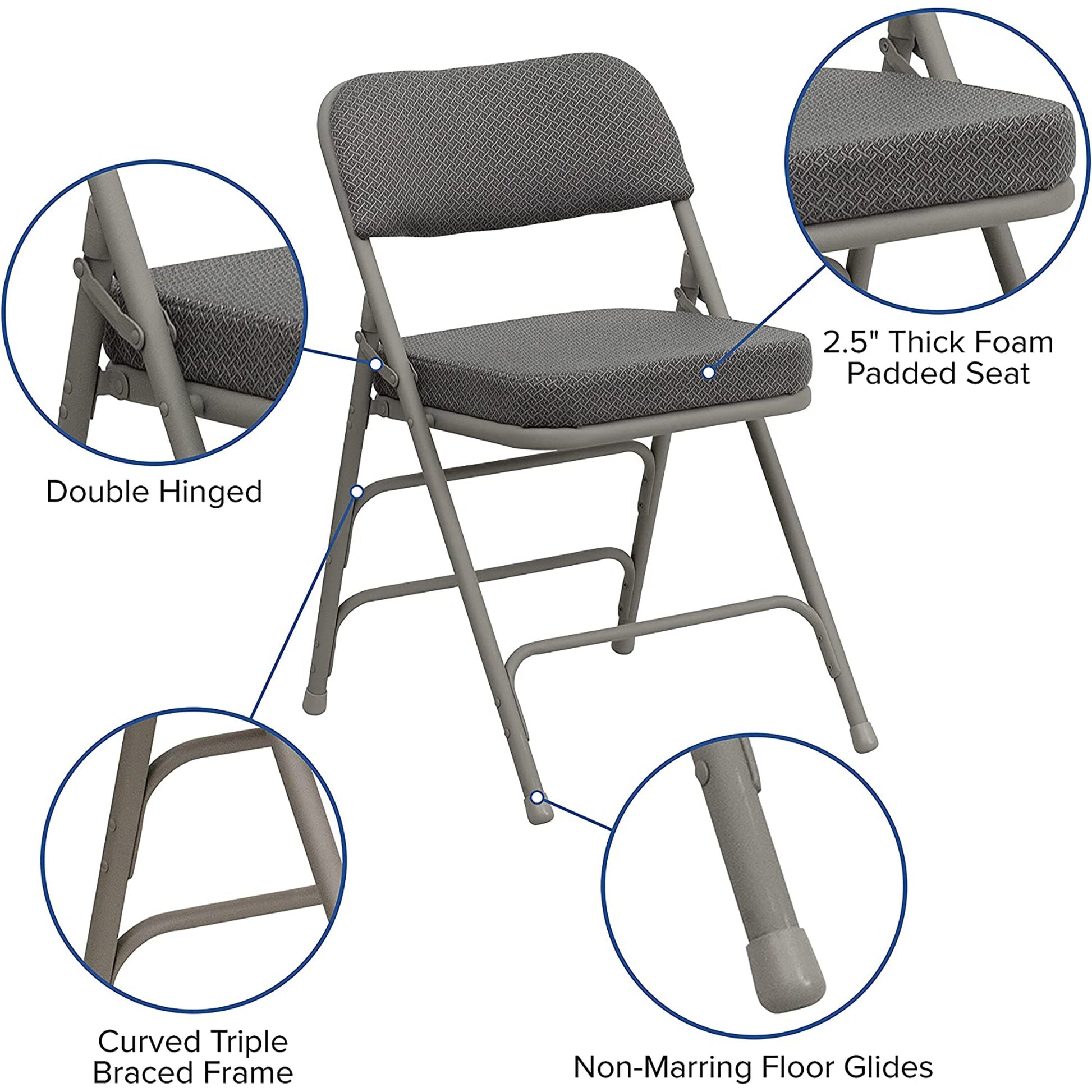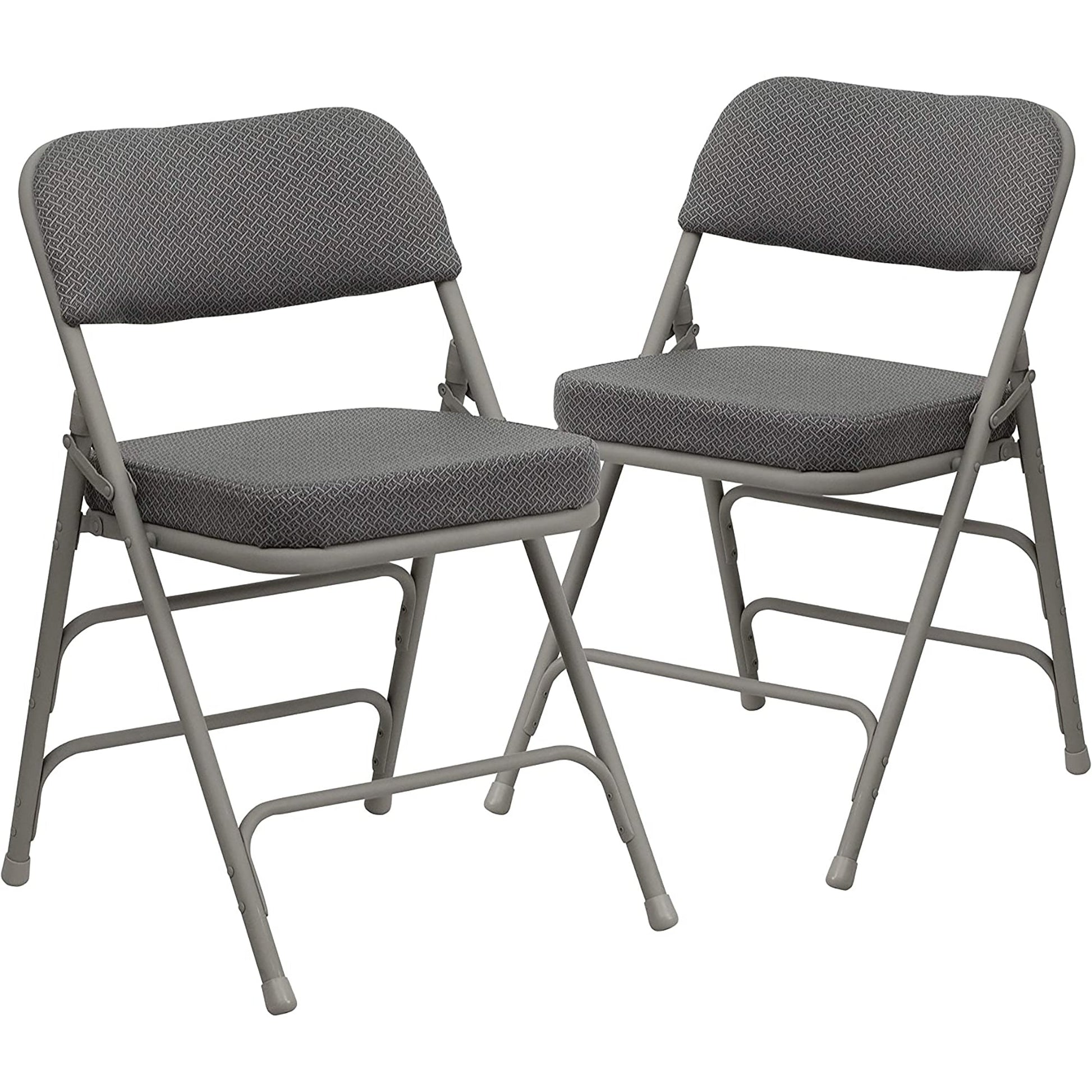 Premium Curved Triple Braced and Double Hinged Fabric Metal Folding Chair - Gray