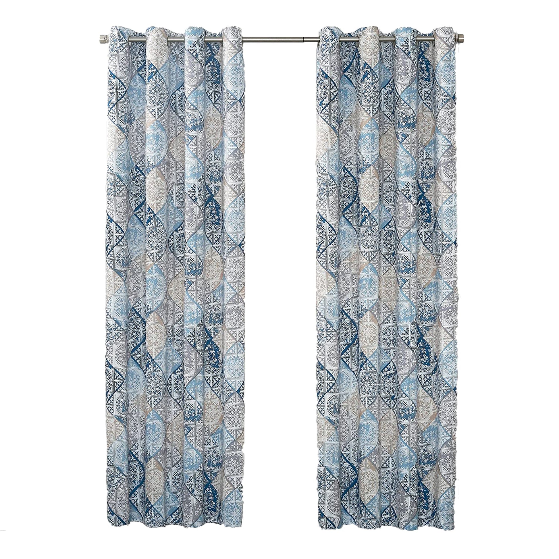 1pc Medallion Print Energy Efficient Grommet Curtain Panel 54 x 84 Inches - Indigo Blue