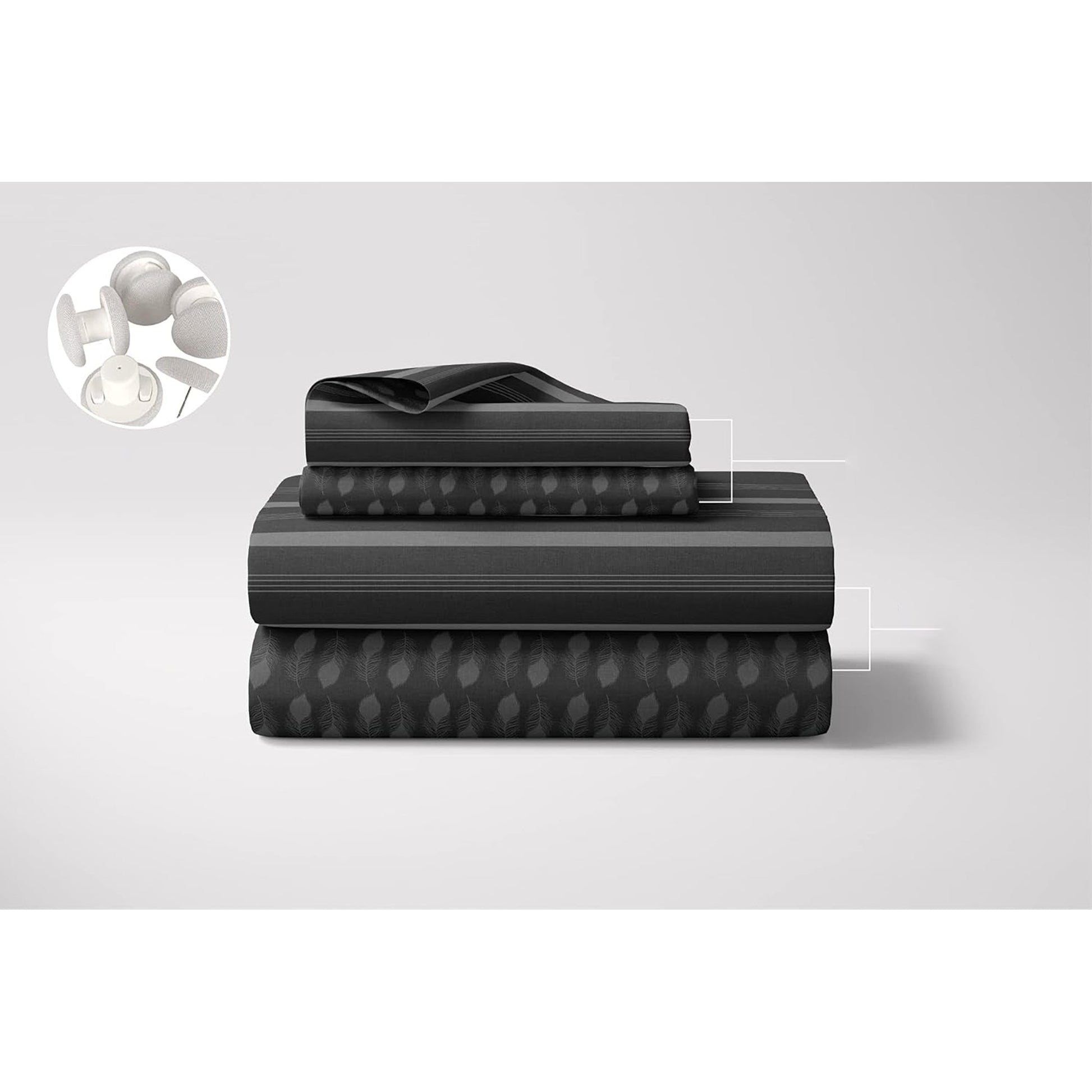 Reversible Microfibre Queen Bed Quilt Cover Set with Button Closure - Black Grey Charcoal