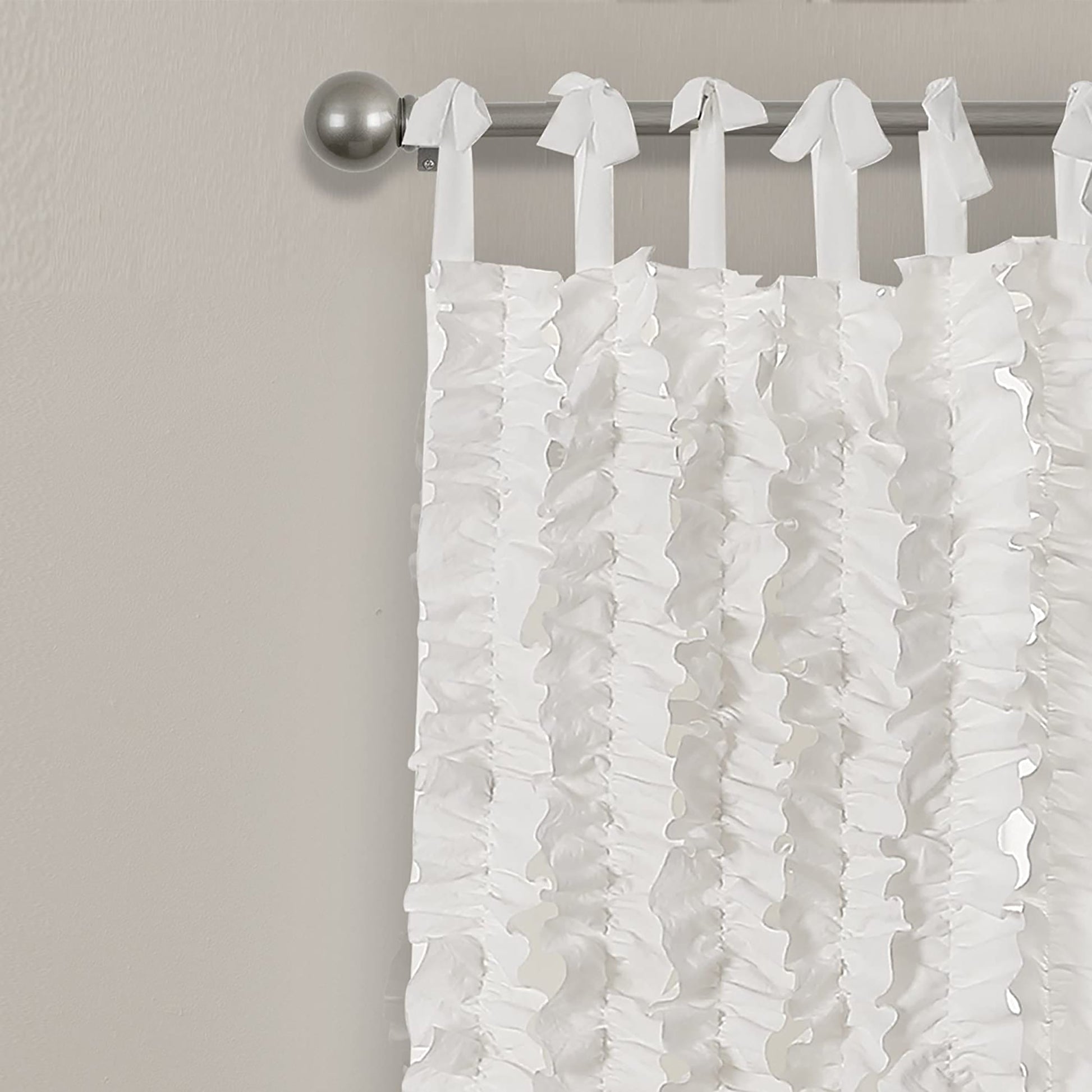 Ruffle Curtain Textured Window Panel Set for Living Dining Room and Bedroom - White