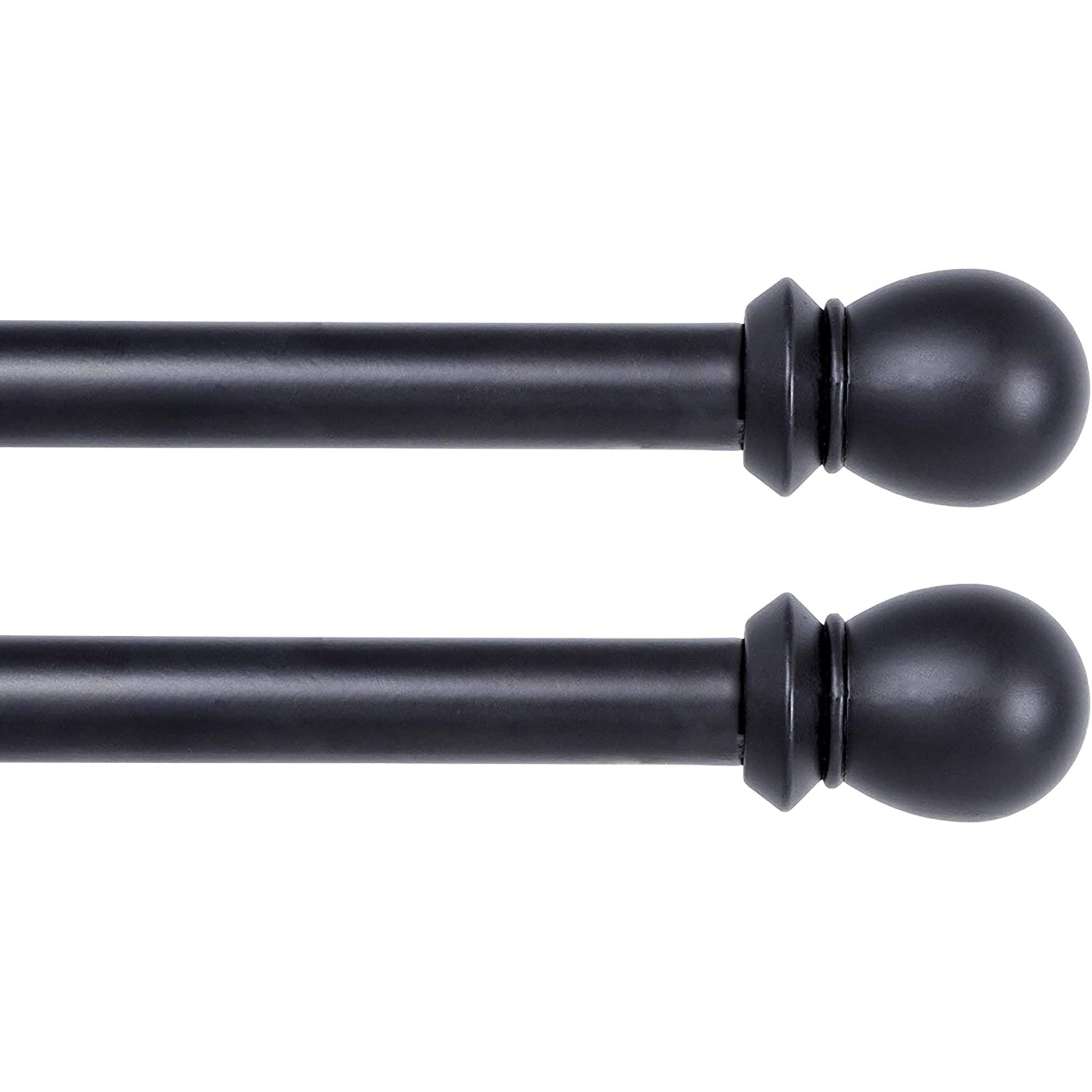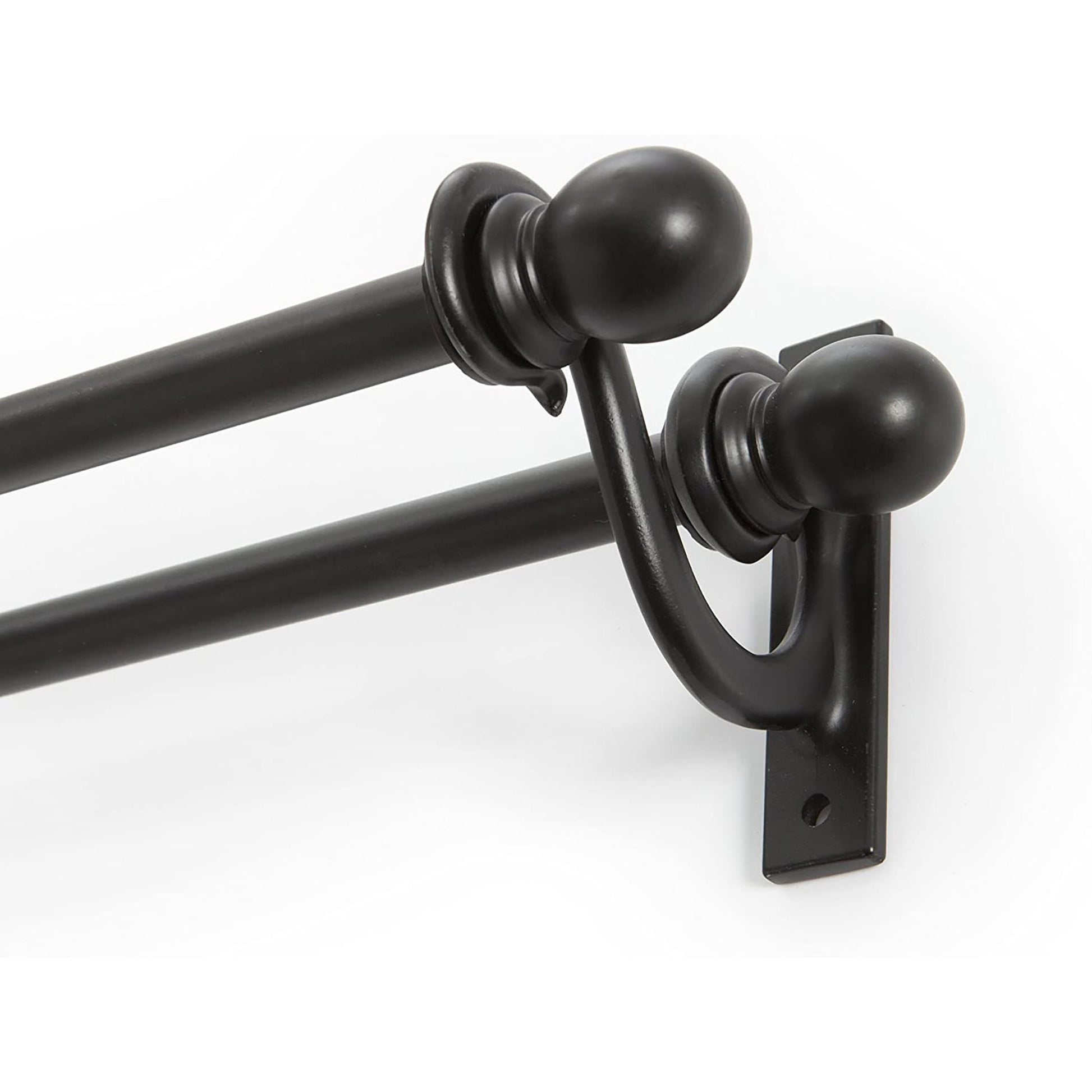 Scroll Bracket Double Window Curtain Rod Set 28 to 48 Inch - Black