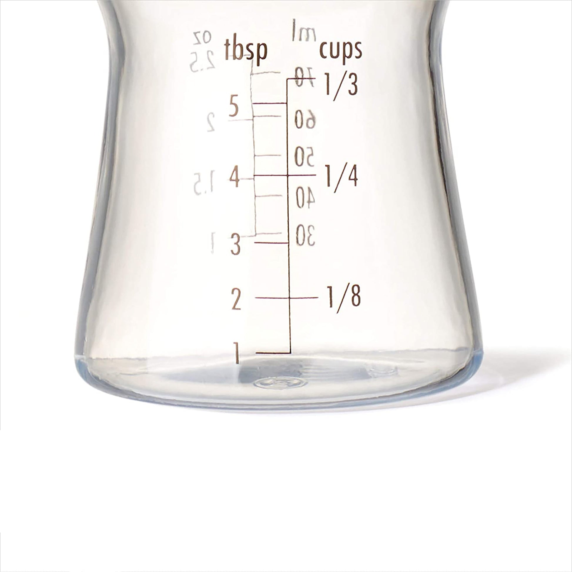 -This small citrus juicer is the ideal size for measuring citrus juice for cooking and baking. The Juicer is a 2. 5-ounce cup with convenient measuring markings and features a unique reamer design for easy and efficient juicing. The Reamer dish fits securely onto the cup for stability while juicing. The Juicer features a drip-free spout and disassembles for cleaning.