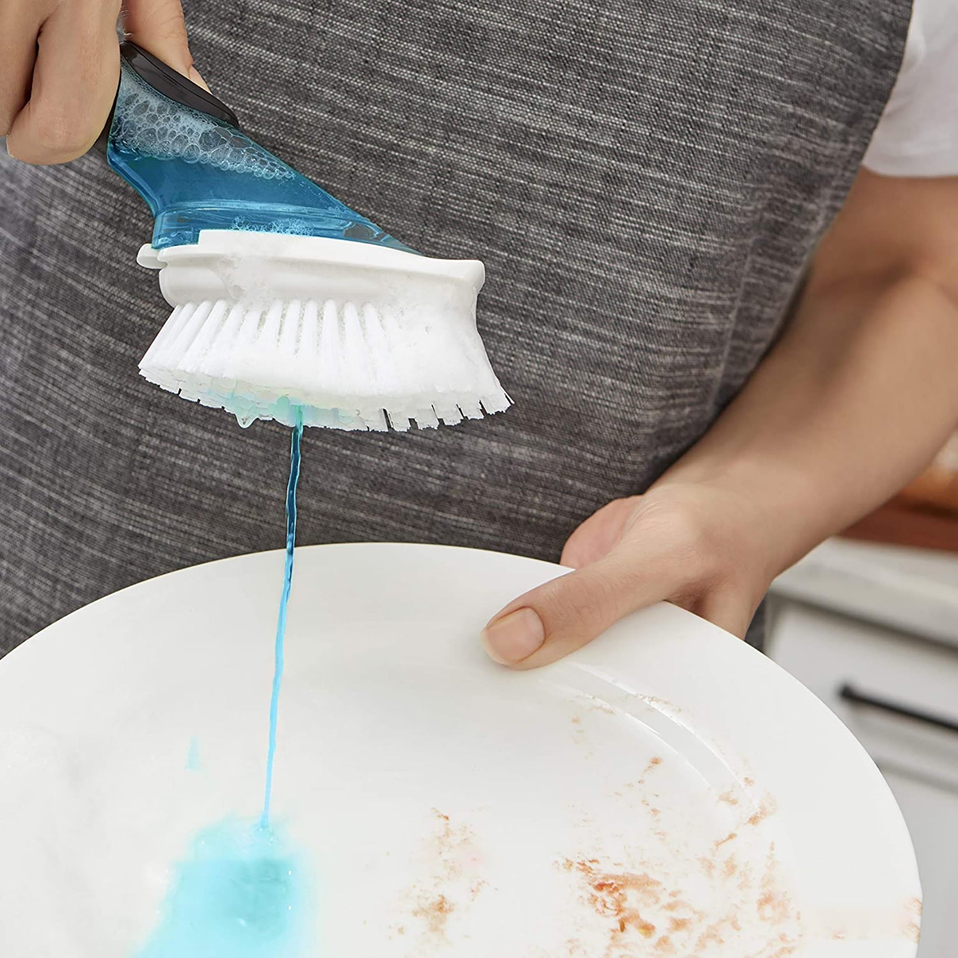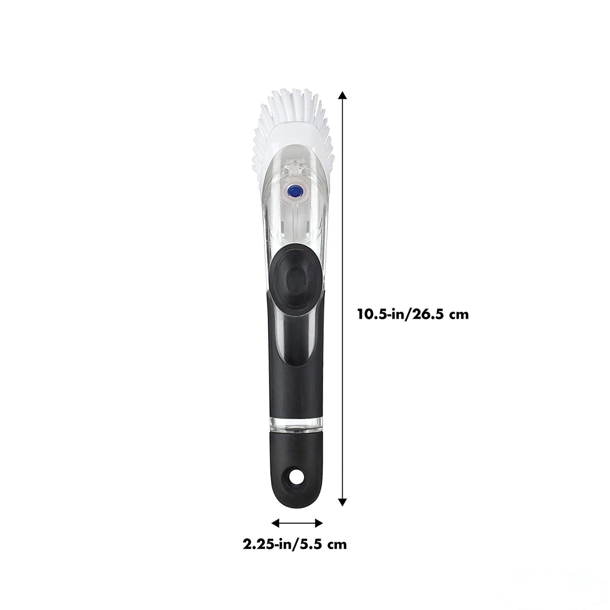 Soap Dispensing Grip Dish Brush for Pot and Sink Cleaning 15x10x5 cm - Black White
