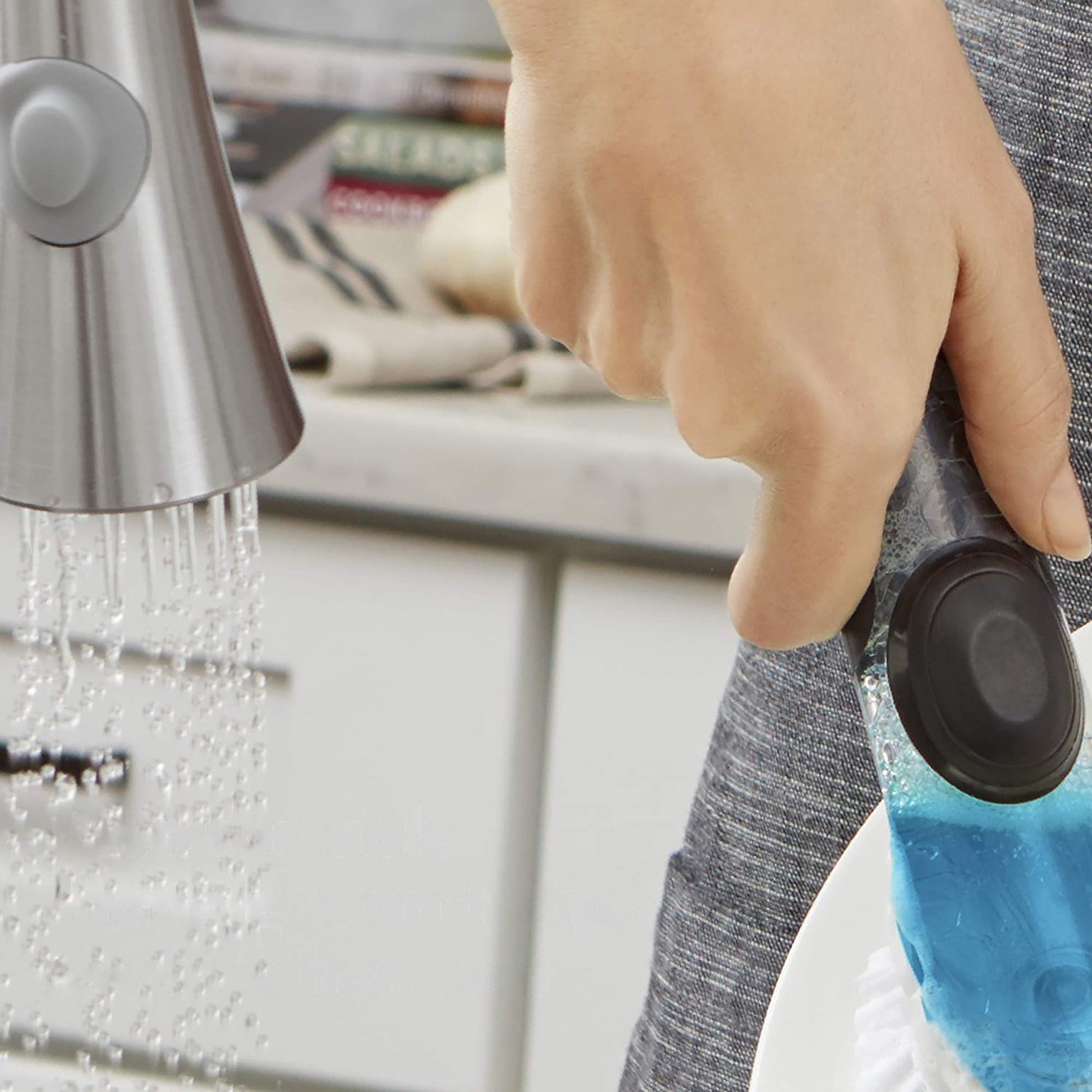 -With a light push of the soft, non-slip button, the silicone valve shoots soap onto your dishes, then quickly seals to prevent drips and waste.