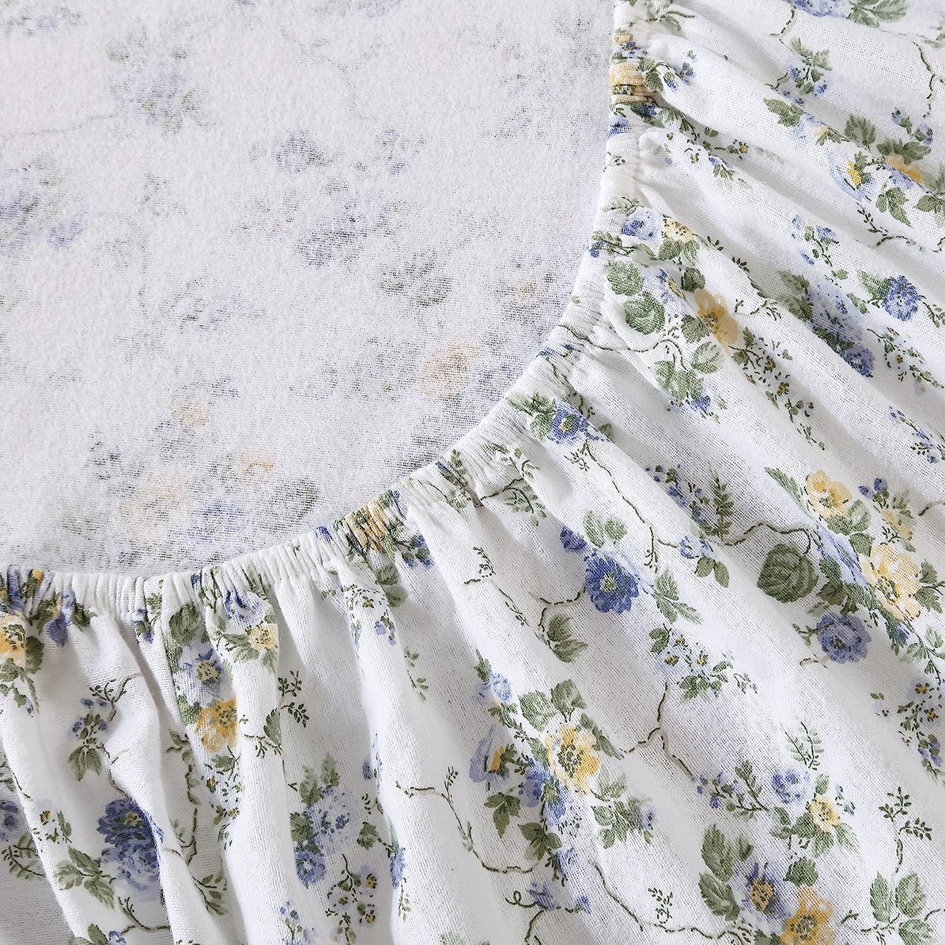 -Mattress Fit: Fitted sheet fully elastic- Premium elastic encased around all 4 sides to keep the fitted sheet in place, 15-inch fitted sheet pocket depth 13-inch for twin and 14inch for sizes. The Flannel Sheet Set features swirling white leaves on a soft dove gray background