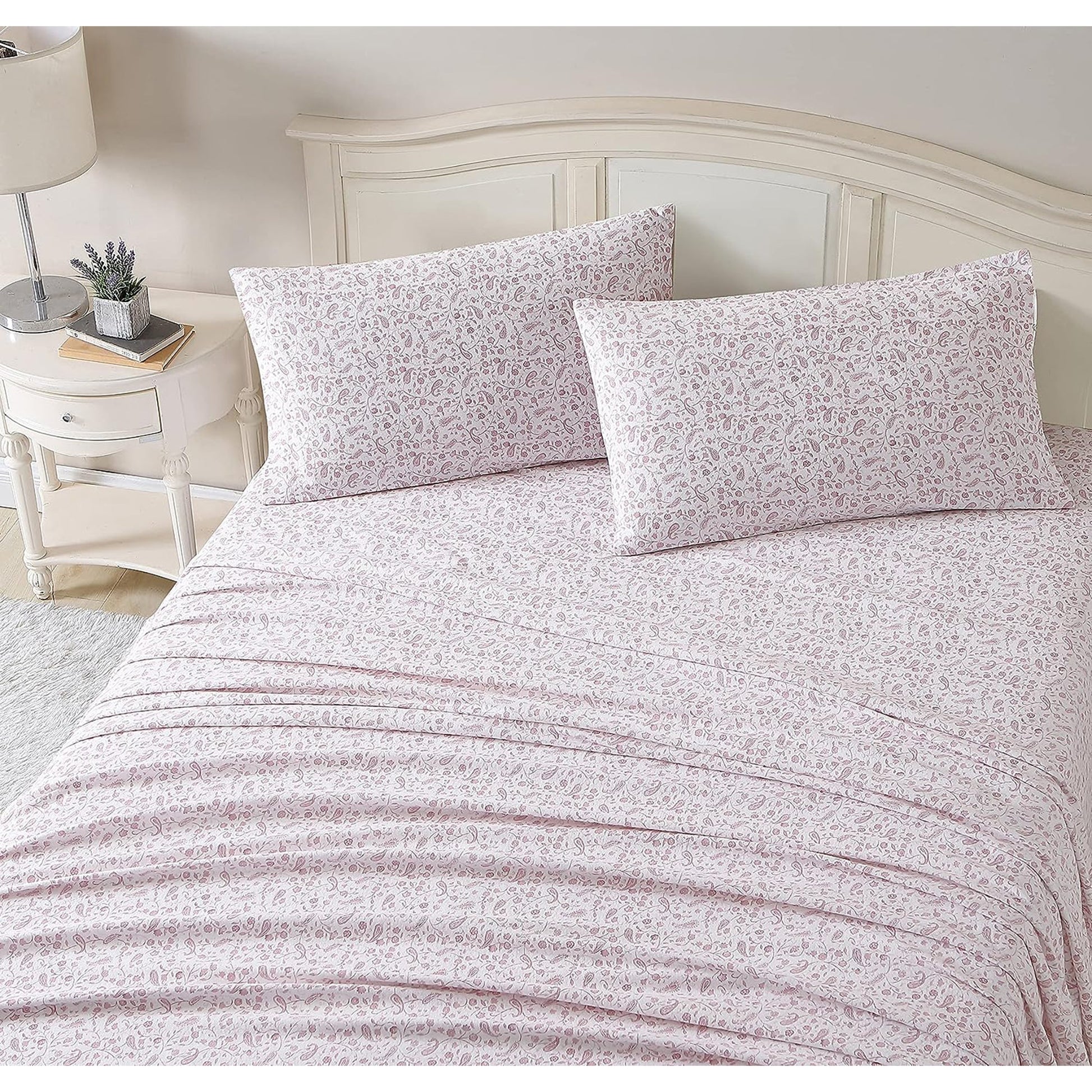Soft Brushed Cotton Flannel Bedding Sheet Set - Paisley Prance Pink